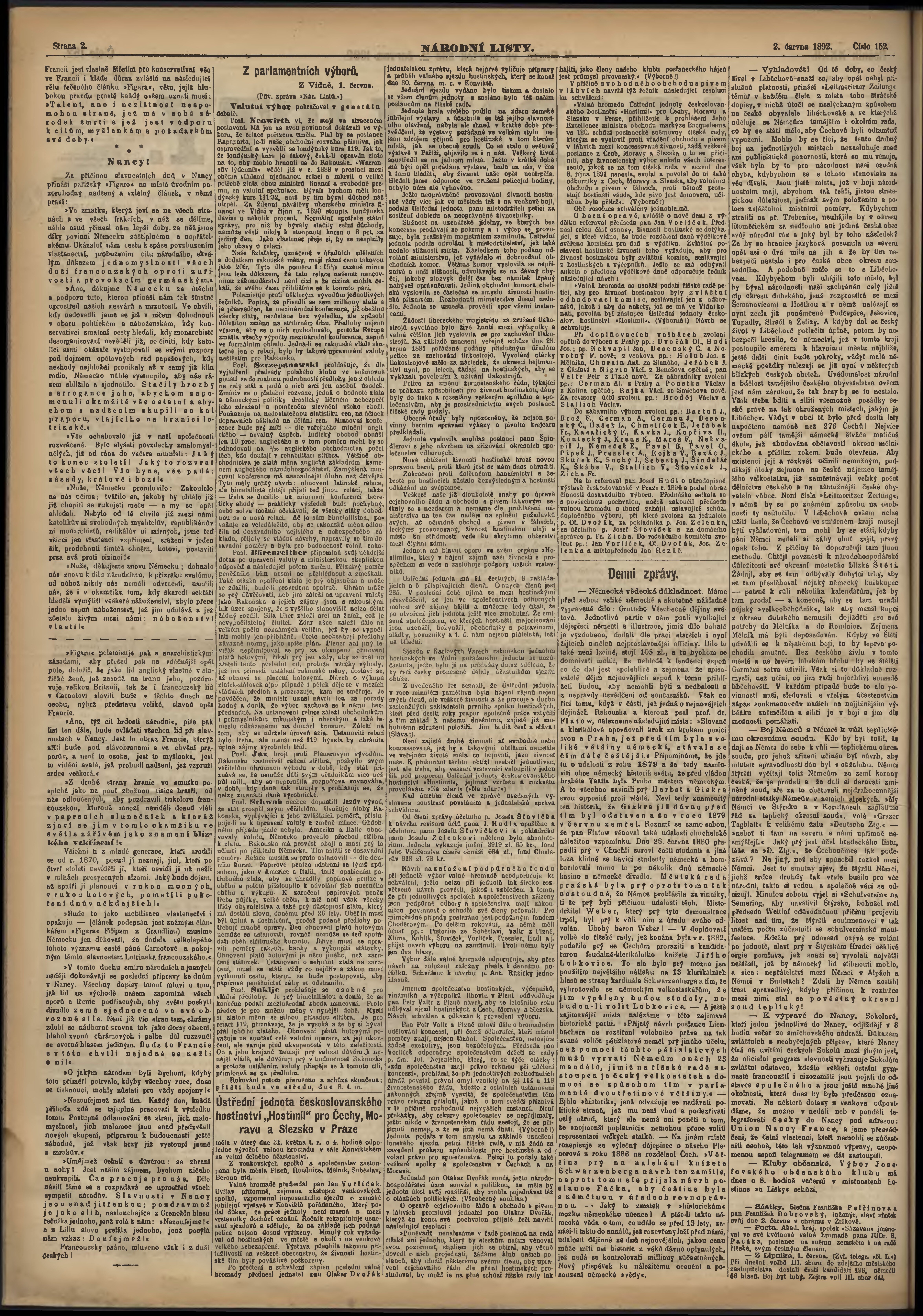 * Datum vydání výtisku: 2.6.1892 Číslo výtisku: 152