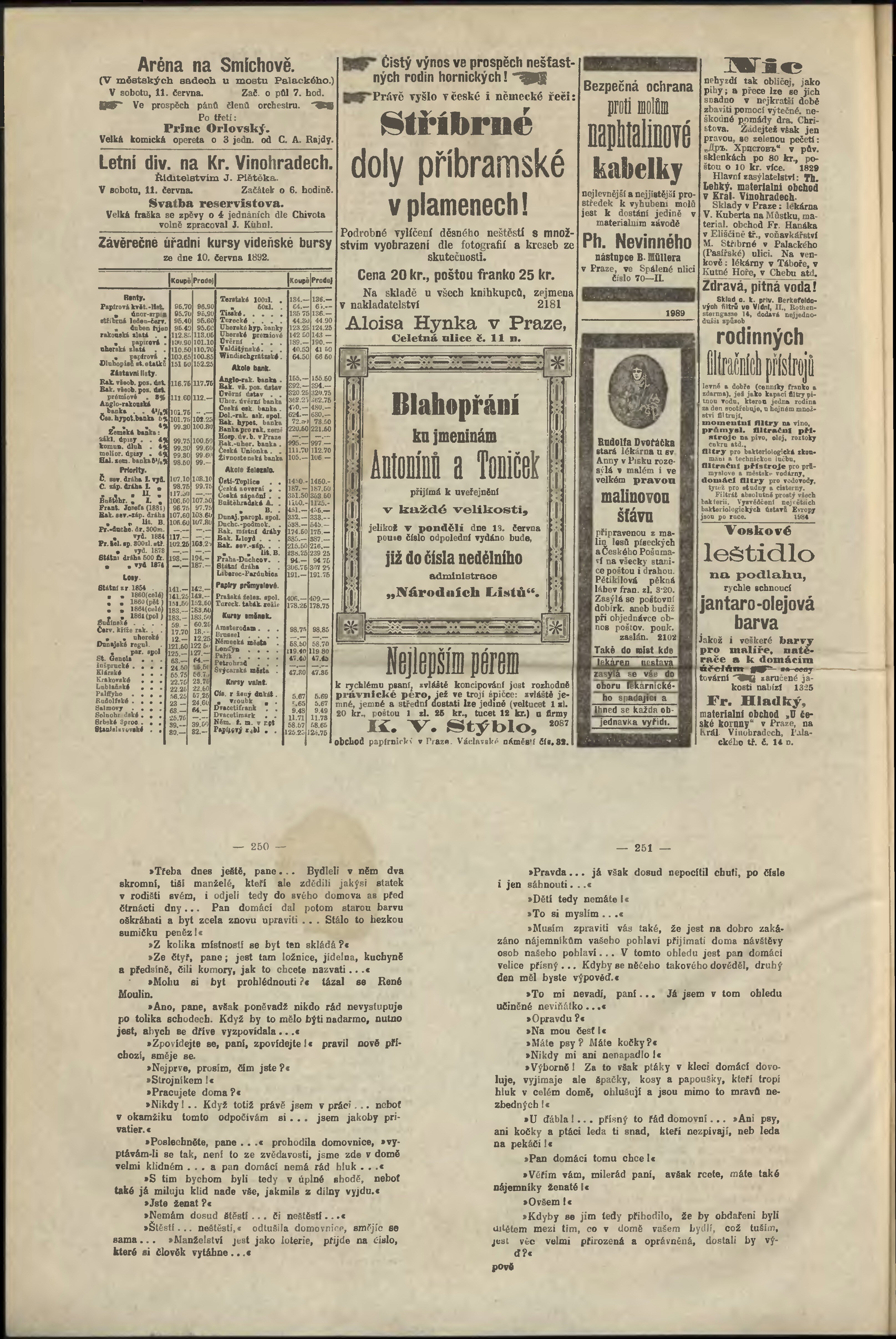 * Datum vydání výtisku: 11.6.1892 Číslo výtisku: 160 Poznámky k výtisku: odpolední vydání;