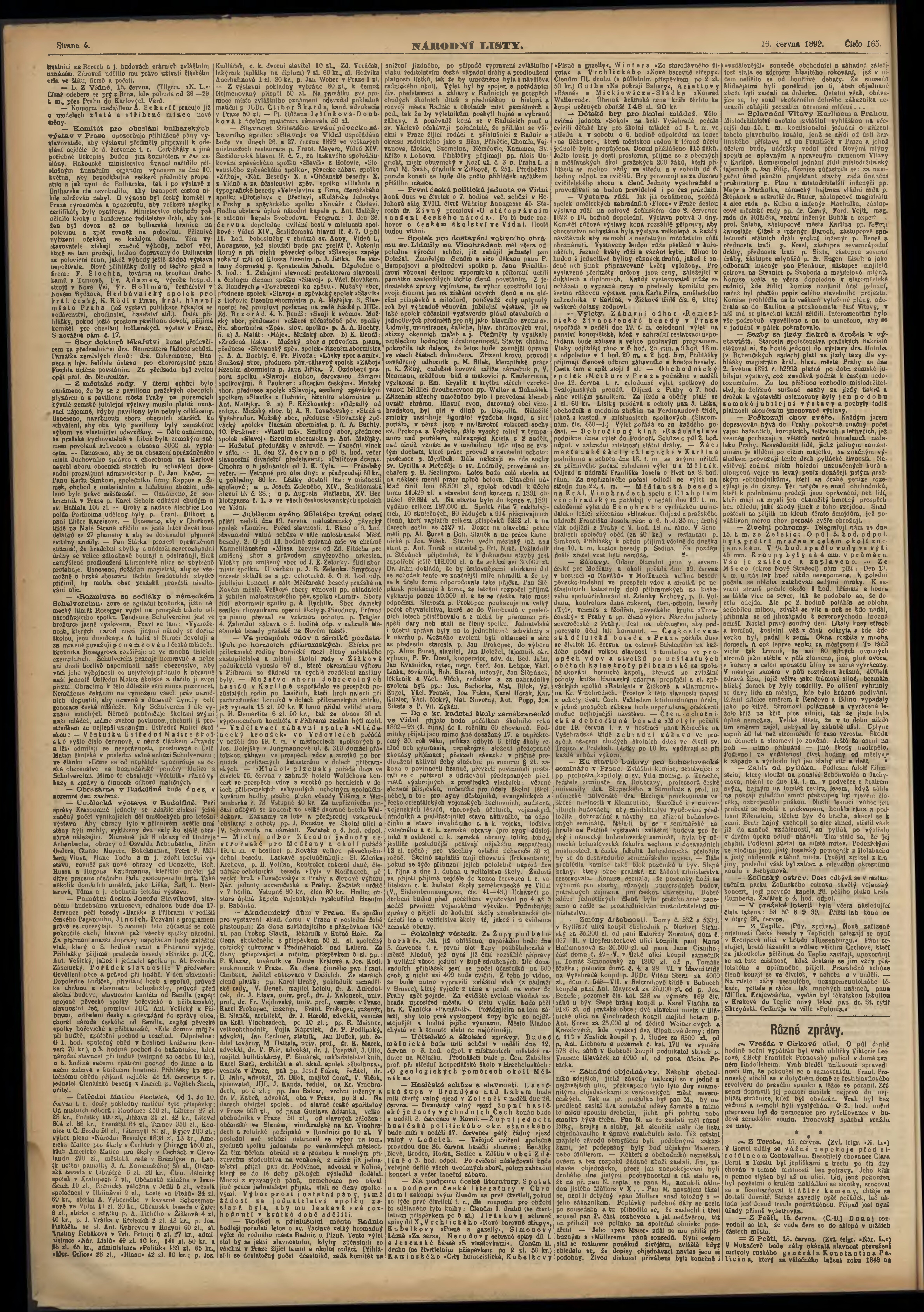 * Datum vydání výtisku: 16.6.1892 Číslo výtisku: 165