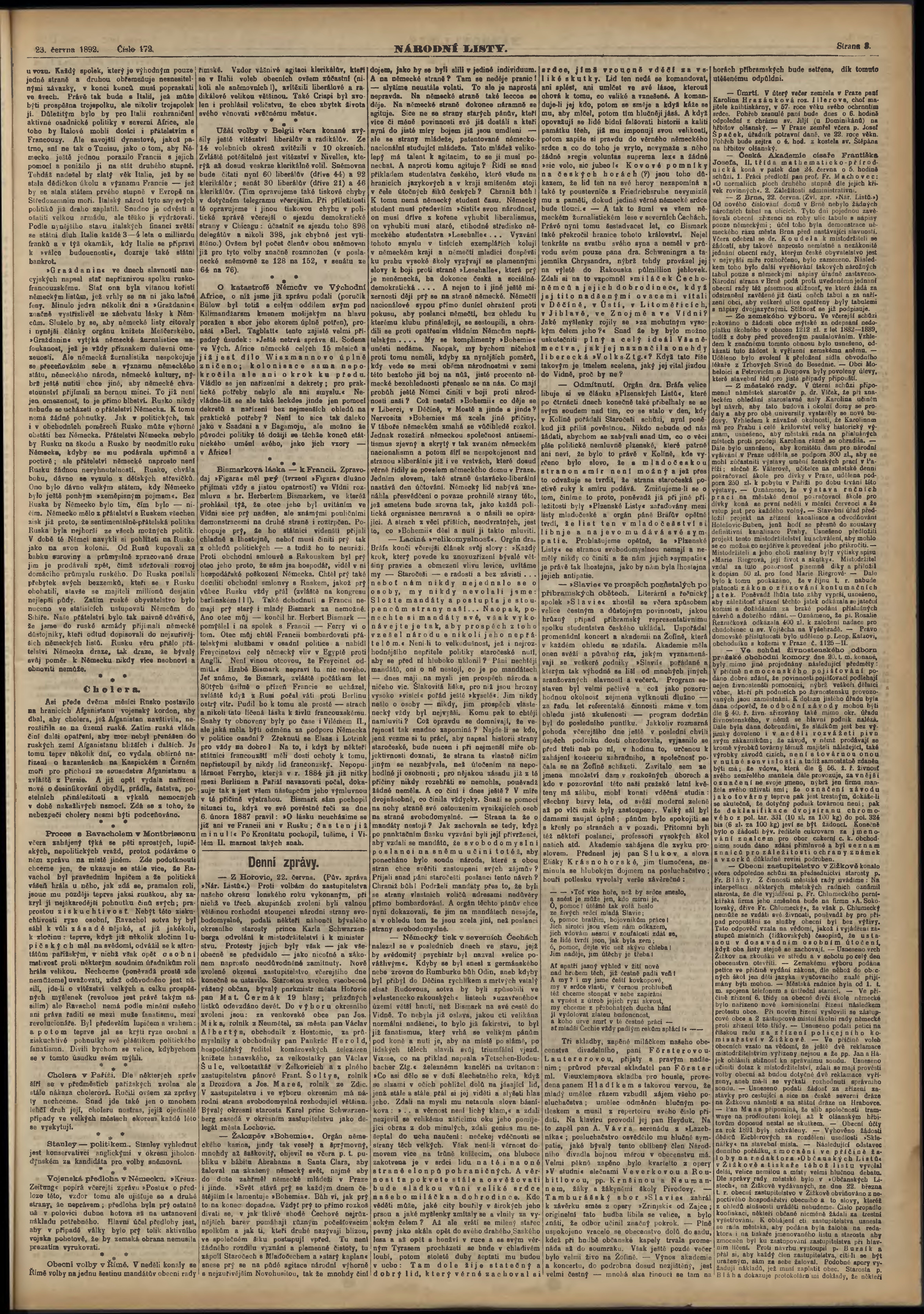 * Datum vydání výtisku: 23.6.1892 Číslo výtisku: 172