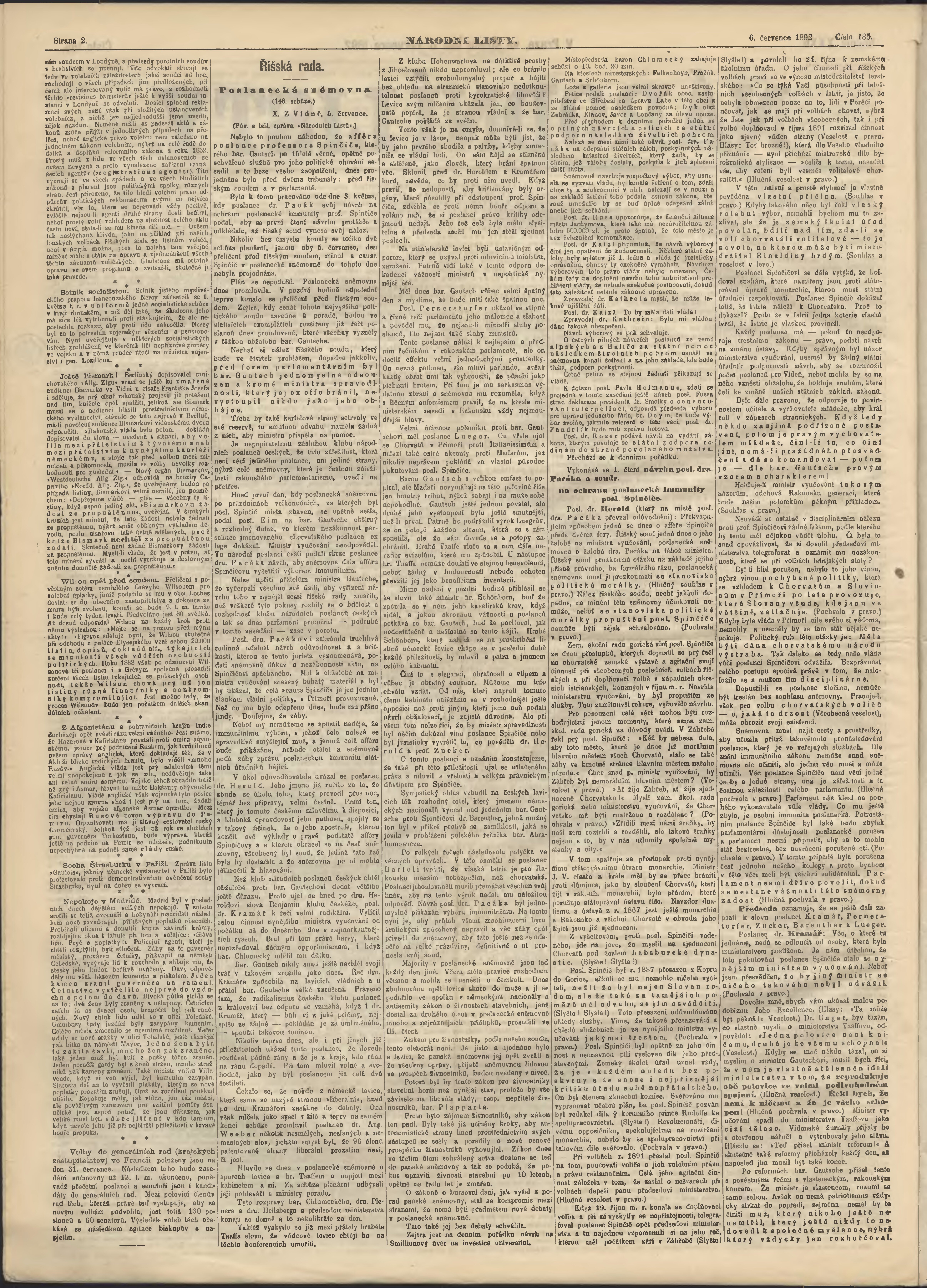 * Datum vydání výtisku: 6.7.1892 Číslo výtisku: 185