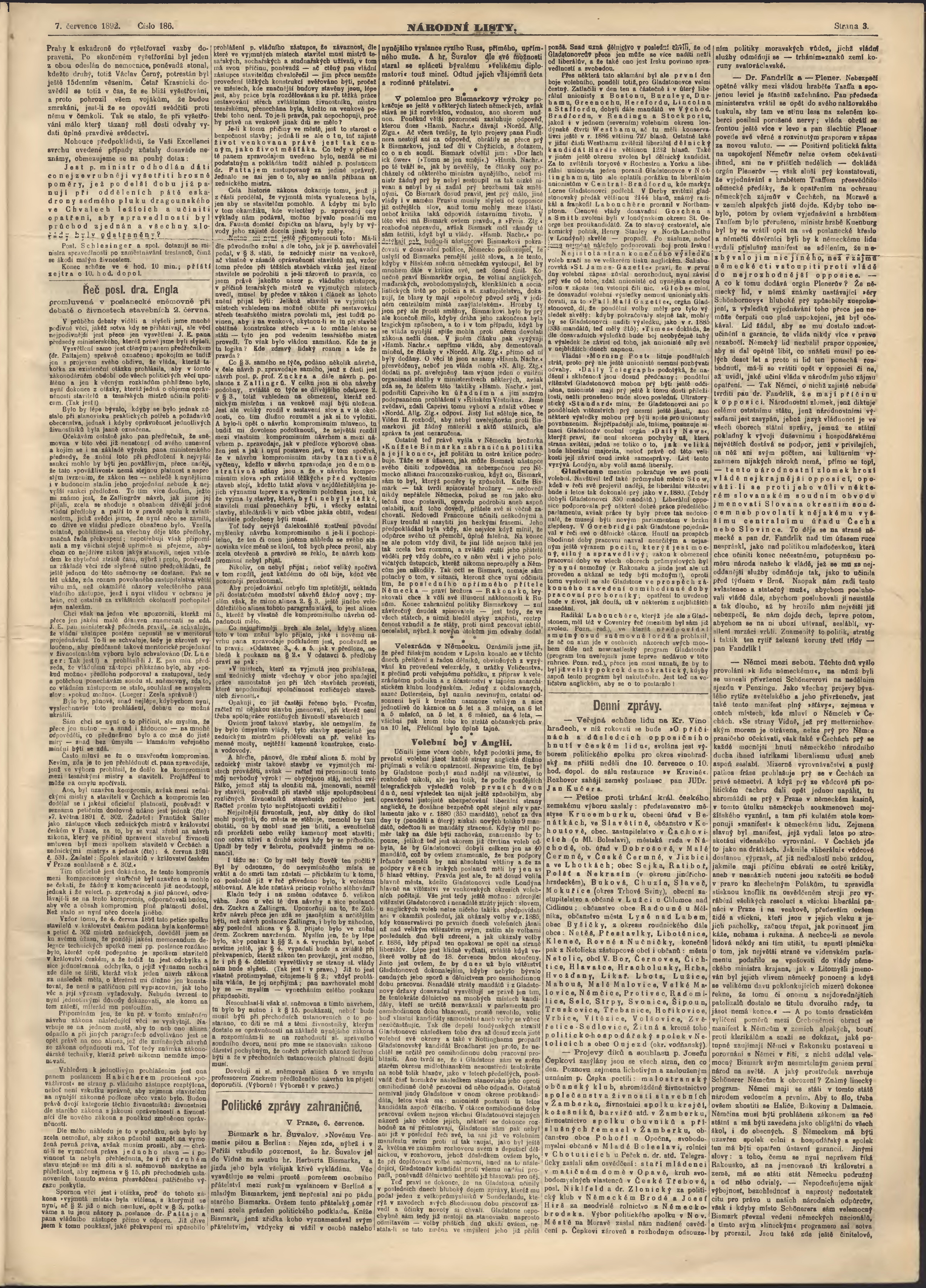 * Datum vydání výtisku: 7.7.1892 Číslo výtisku: 186