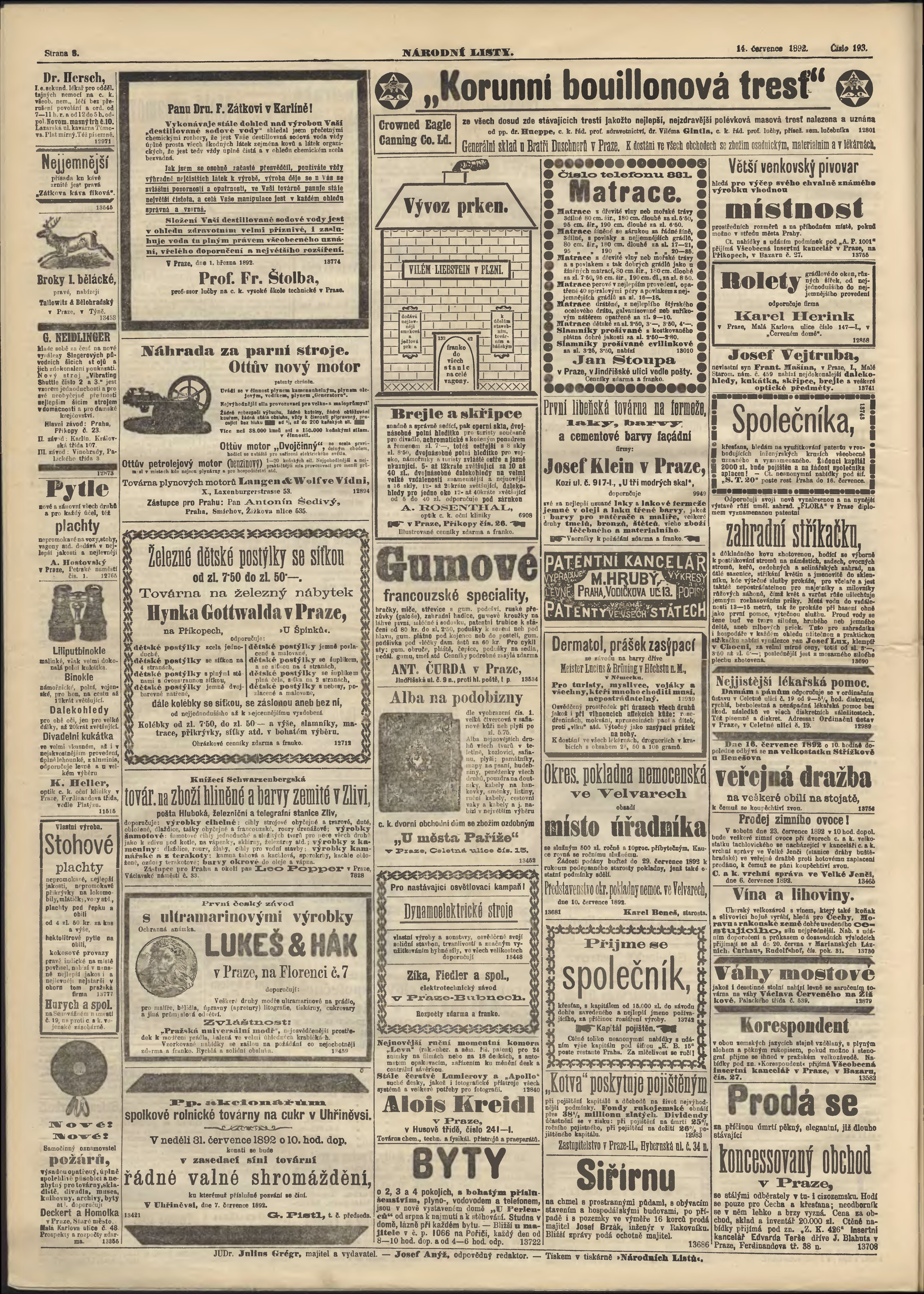 * Datum vydání výtisku: 14.7.1892 Číslo výtisku: 193