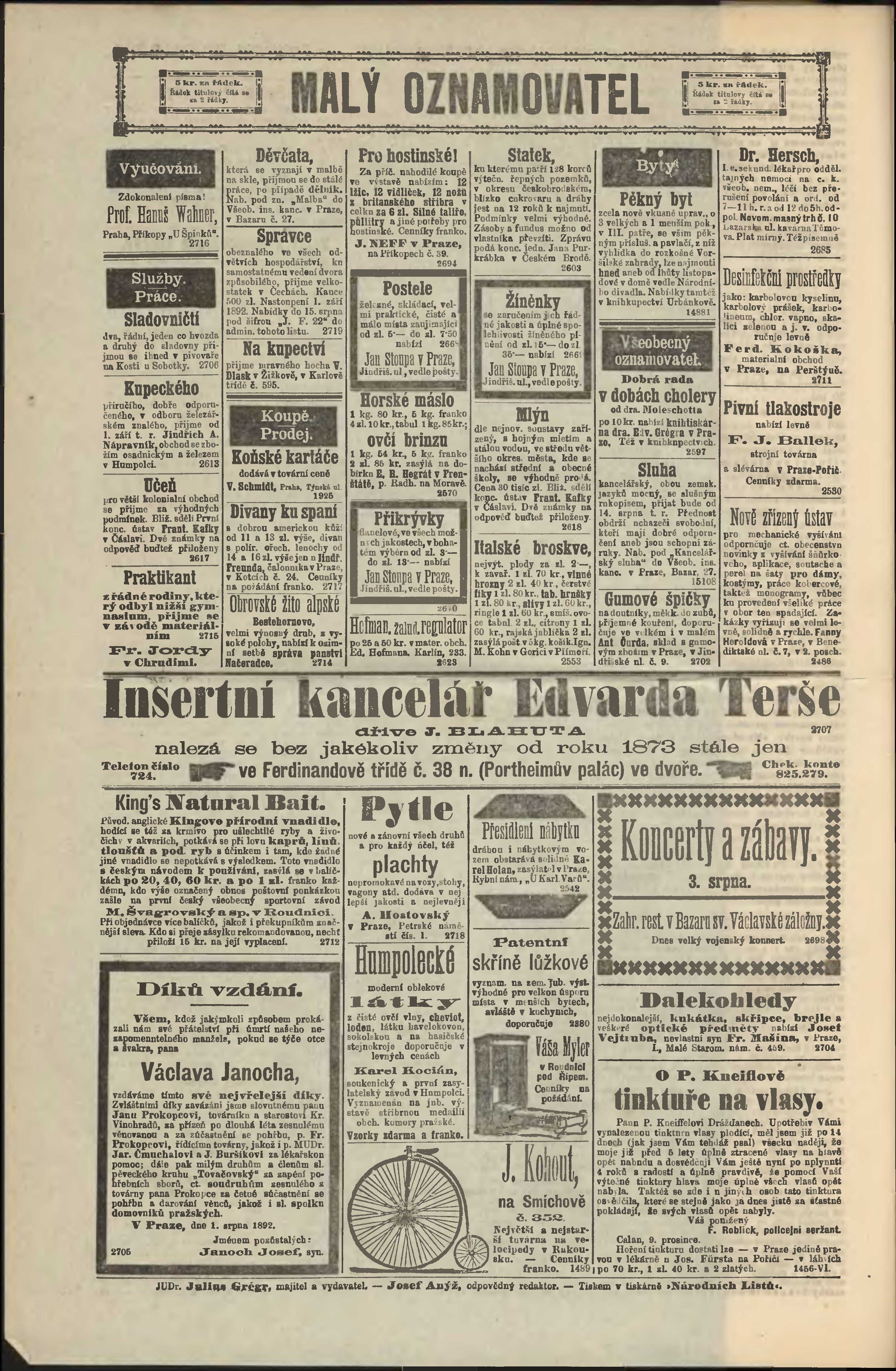 * Datum vydání výtisku: 3.8.1892 Číslo výtisku: 213 Poznámky k výtisku: odpolední vydání;