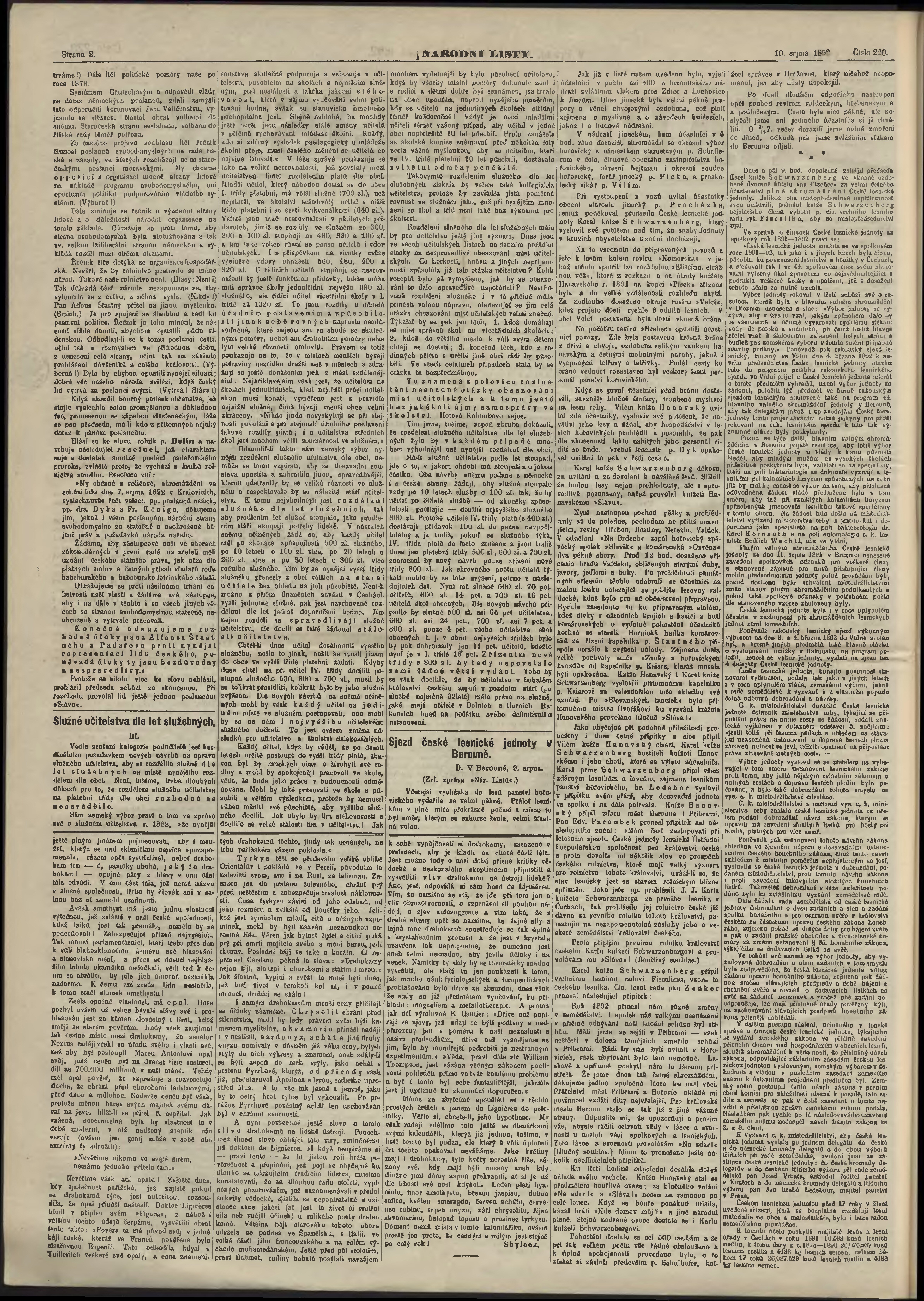 * Datum vydání výtisku: 10.8.1892 Číslo výtisku: 220