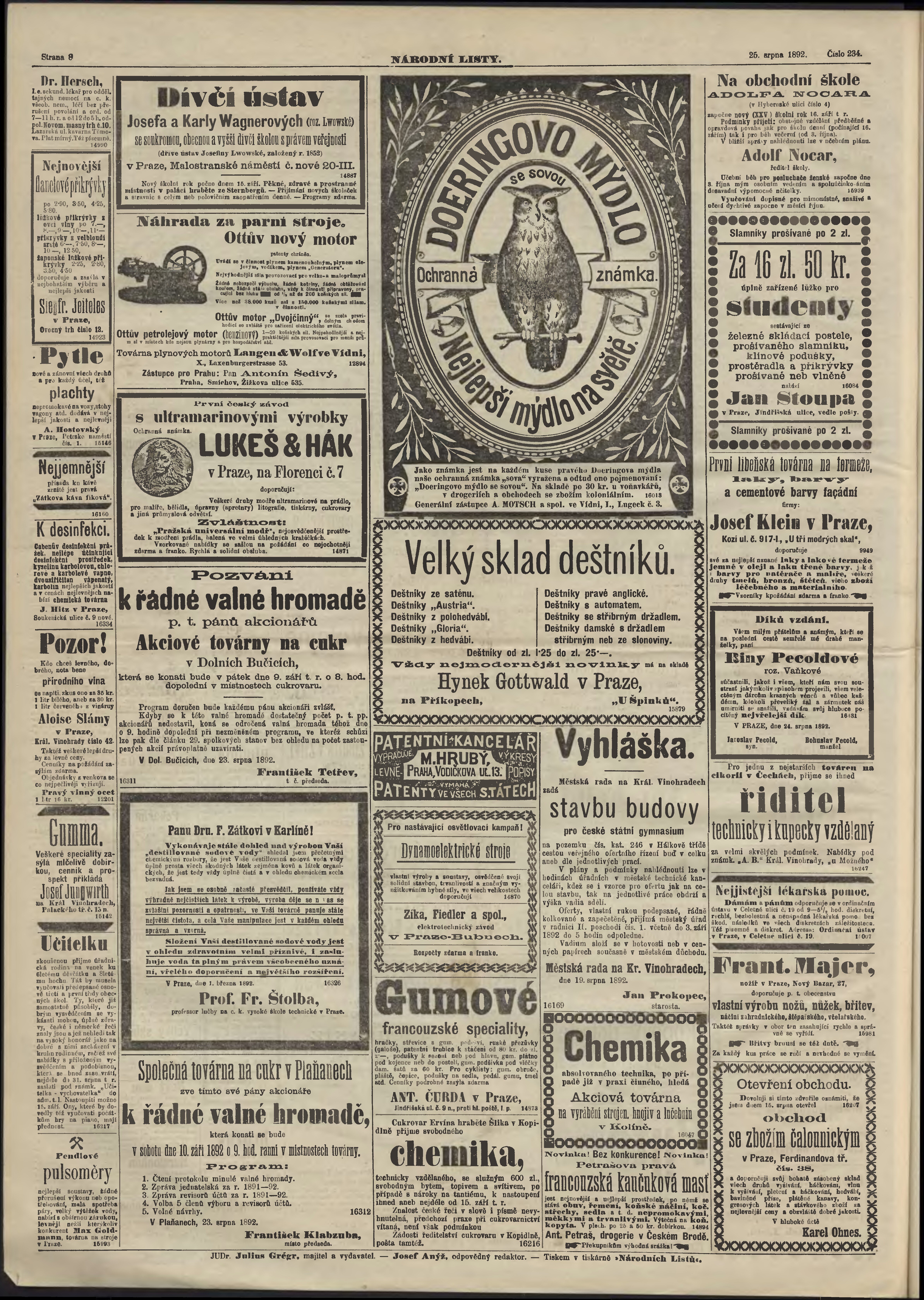 * Datum vydání výtisku: 25.8.1892 Číslo výtisku: 234