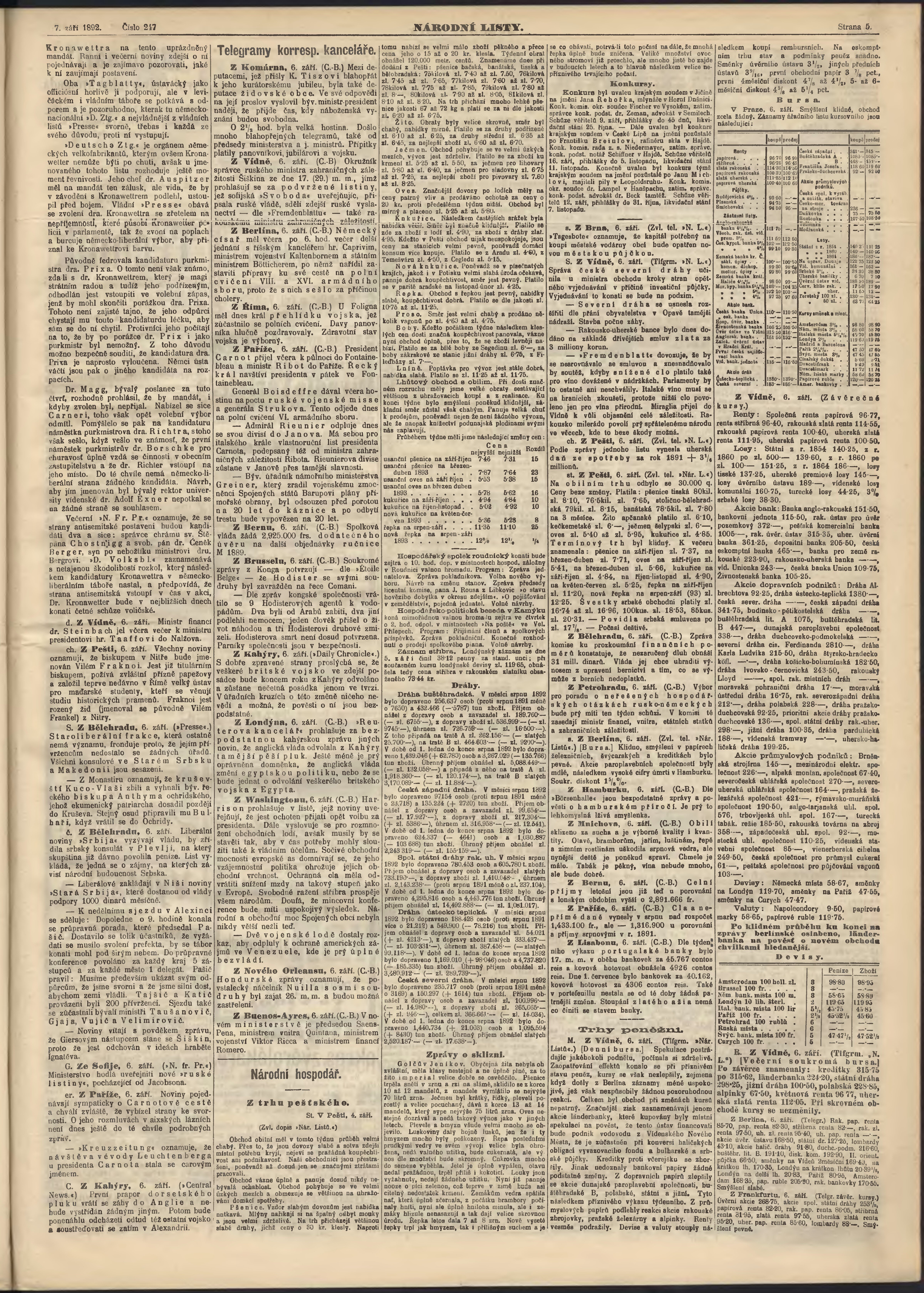 * Datum vydání výtisku: 7.9.1892 Číslo výtisku: 247