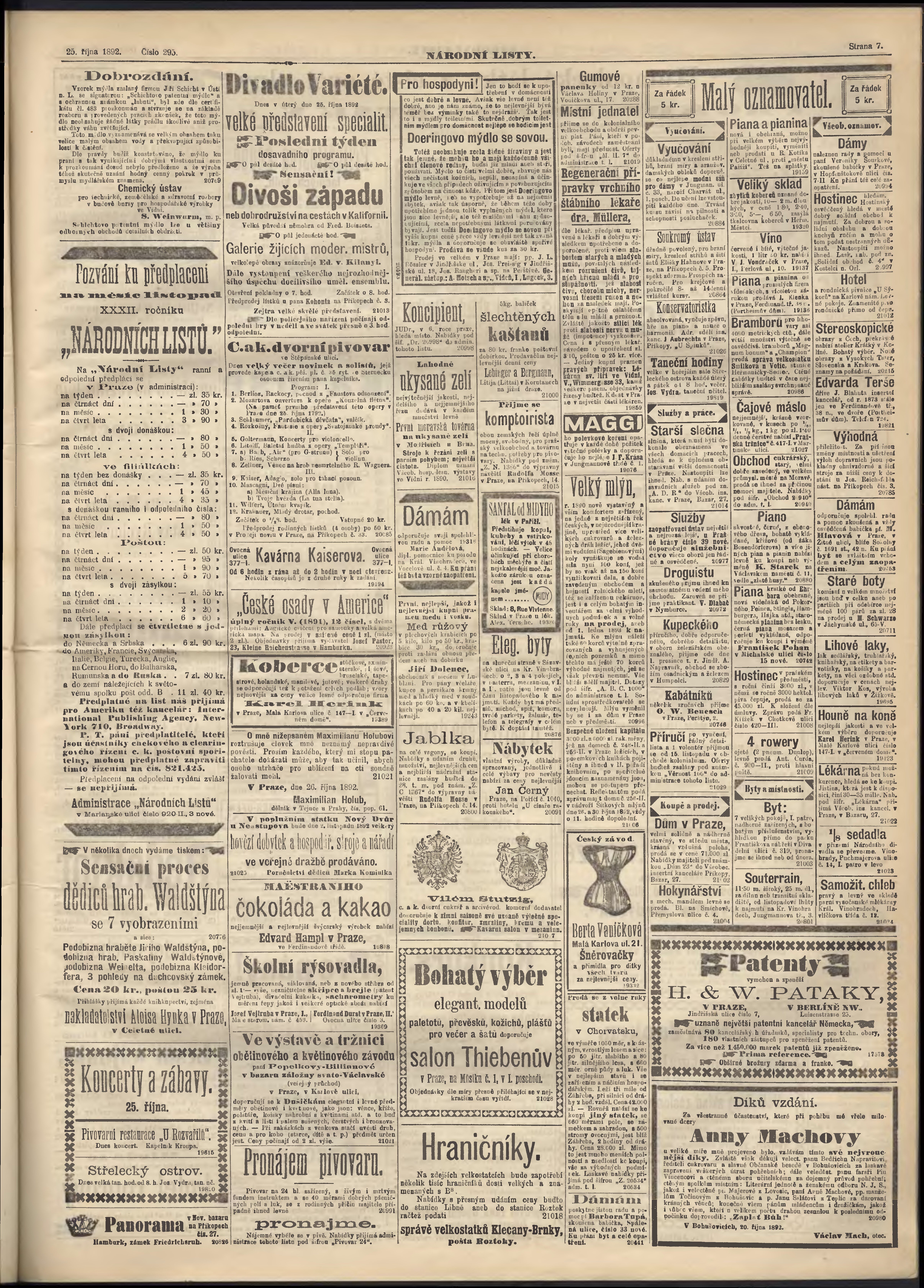 * Datum vydání výtisku: 25.10.1892 Číslo výtisku: 295