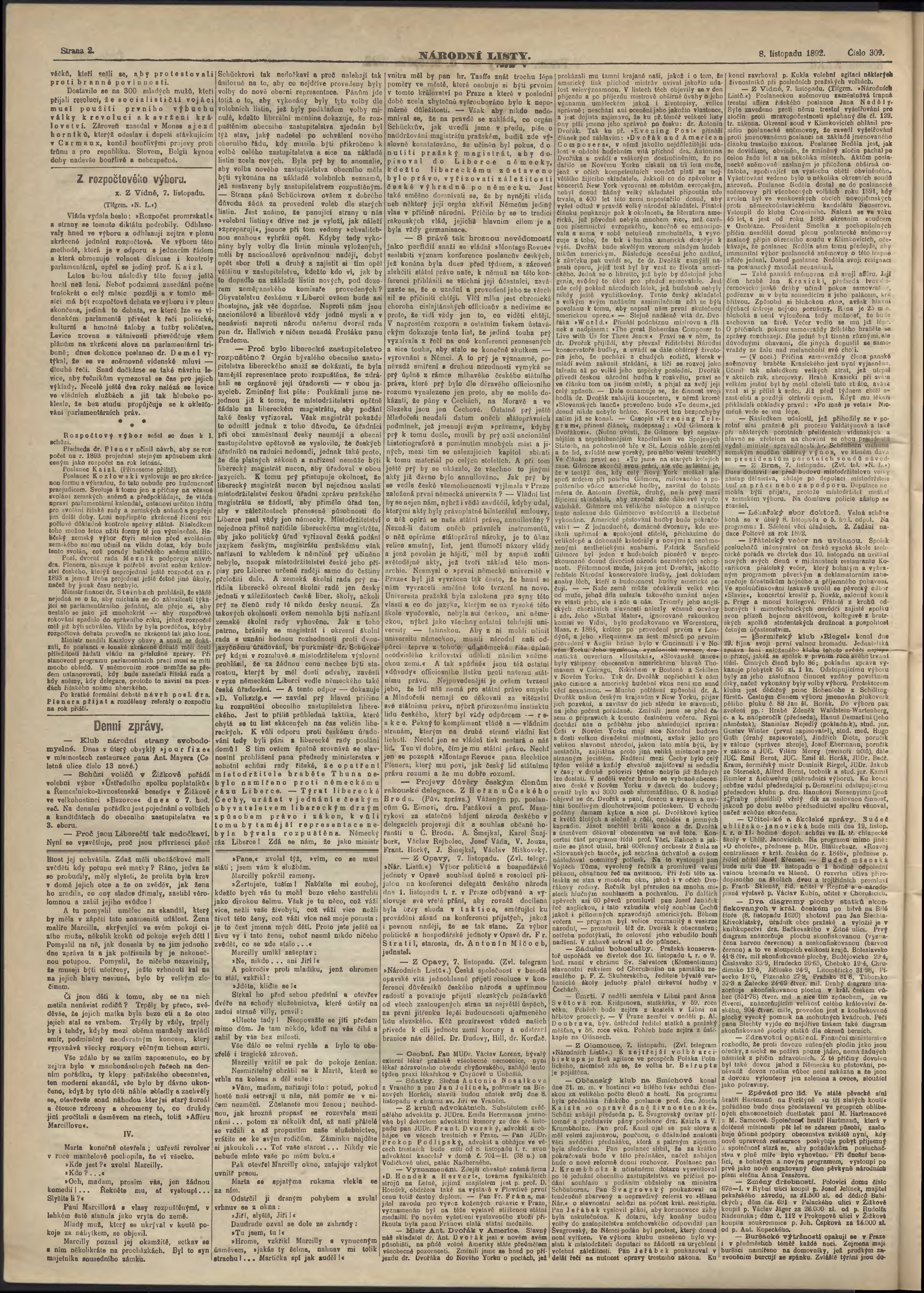 * Datum vydání výtisku: 8.11.1892 Číslo výtisku: 309