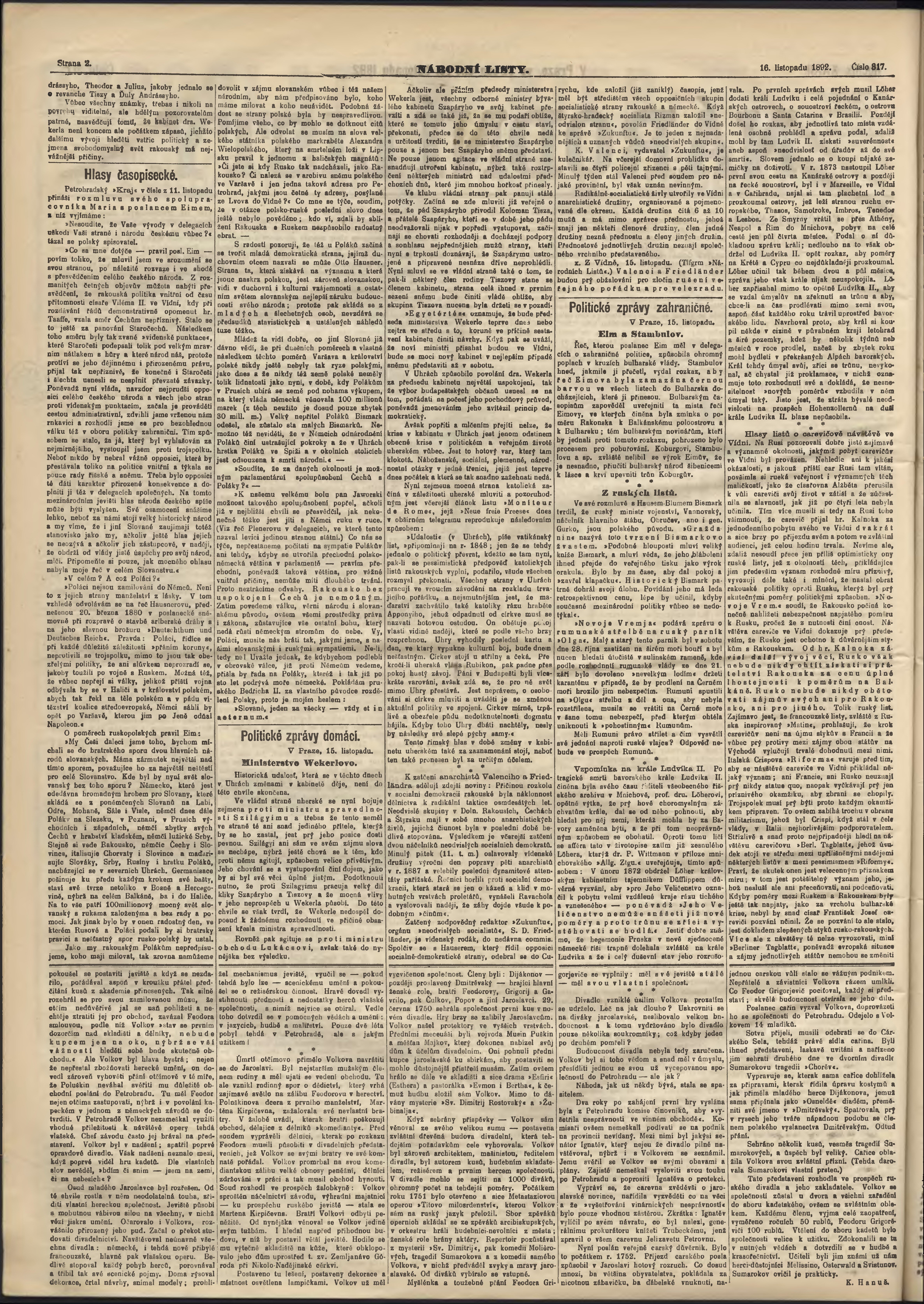 * Datum vydání výtisku: 16.11.1892 Číslo výtisku: 317