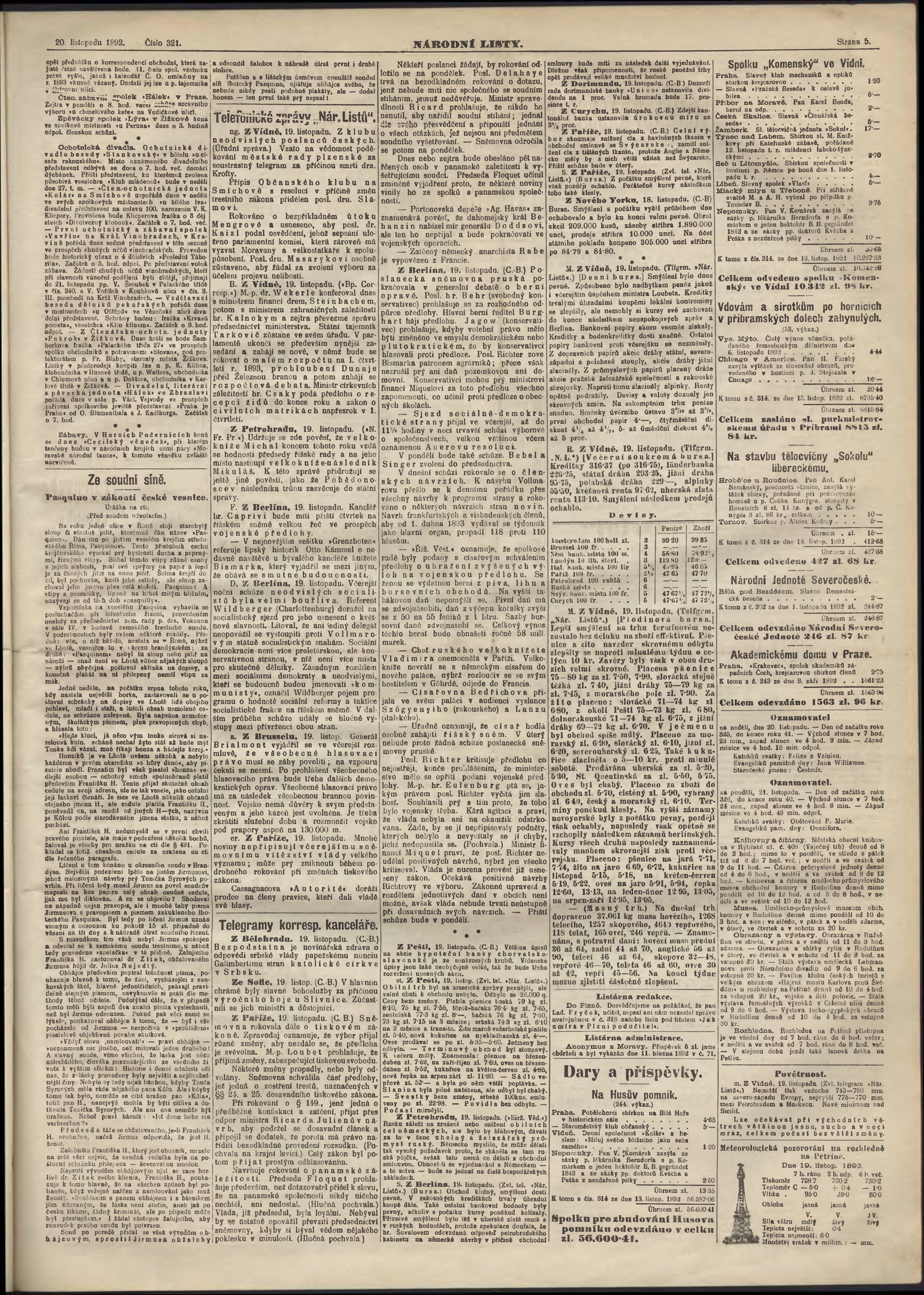 * Datum vydání výtisku: 20.11.1892 Číslo výtisku: 321