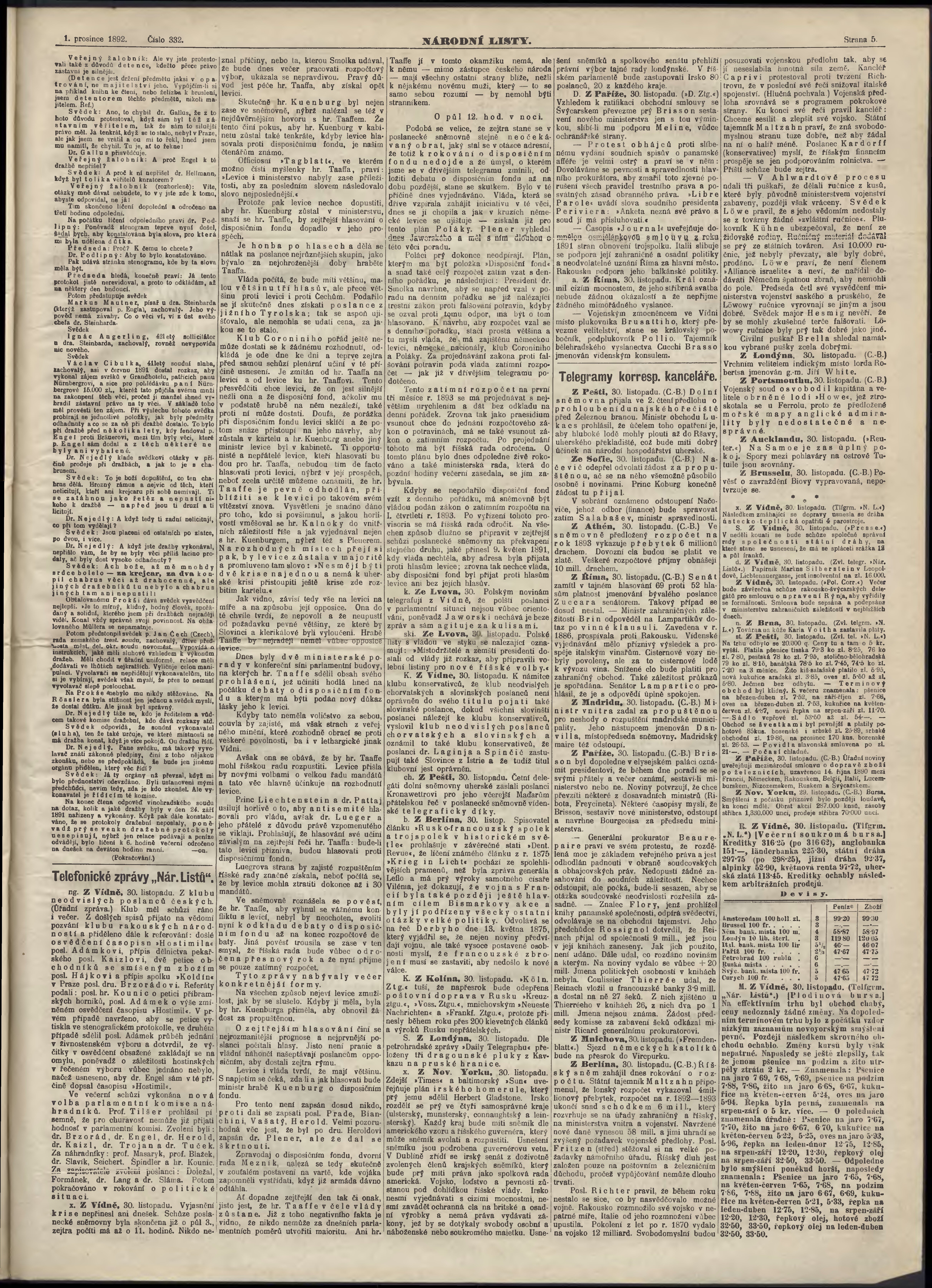 * Datum vydání výtisku: 1.12.1892 Číslo výtisku: 332