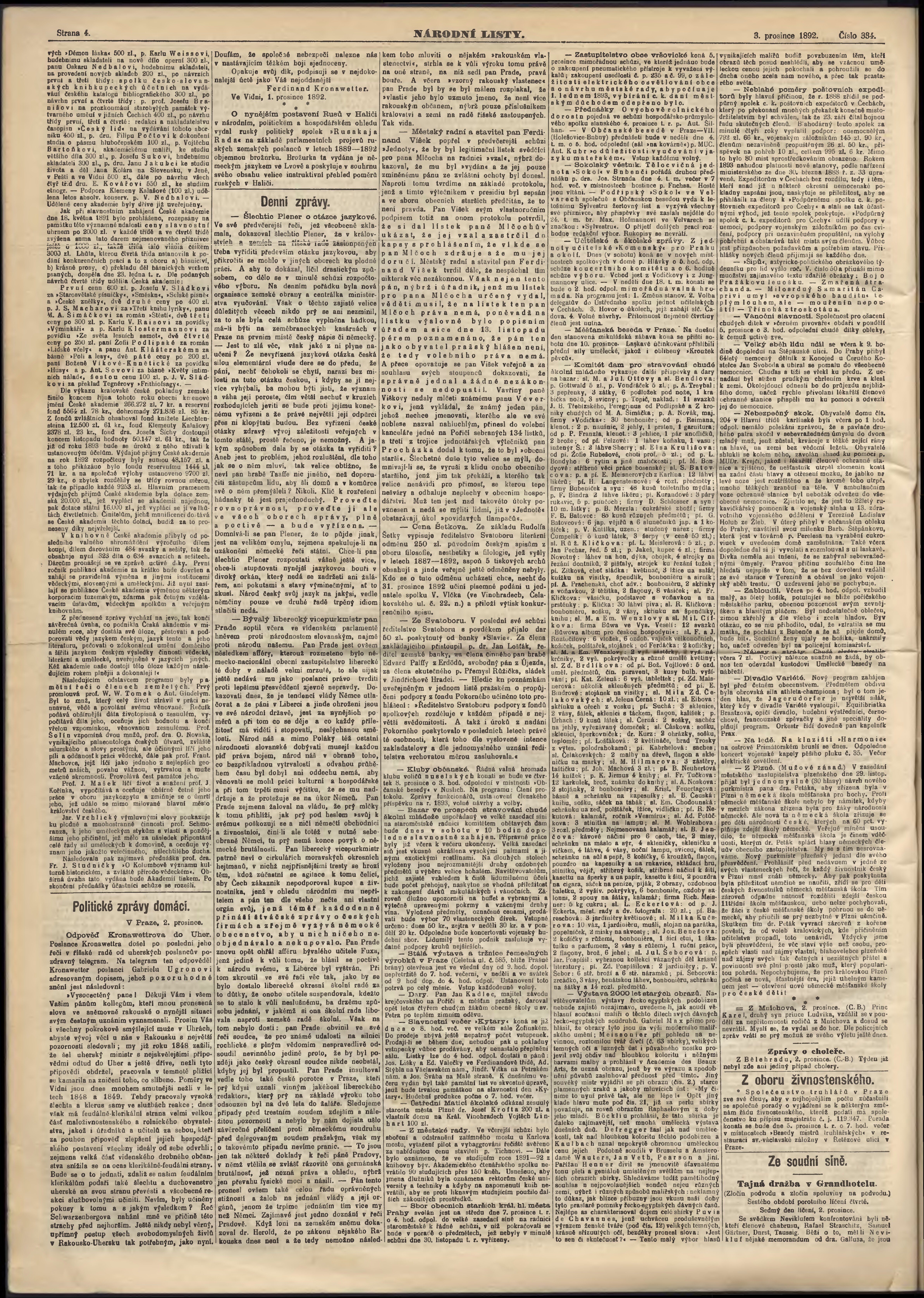 * Datum vydání výtisku: 3.12.1892 Číslo výtisku: 334