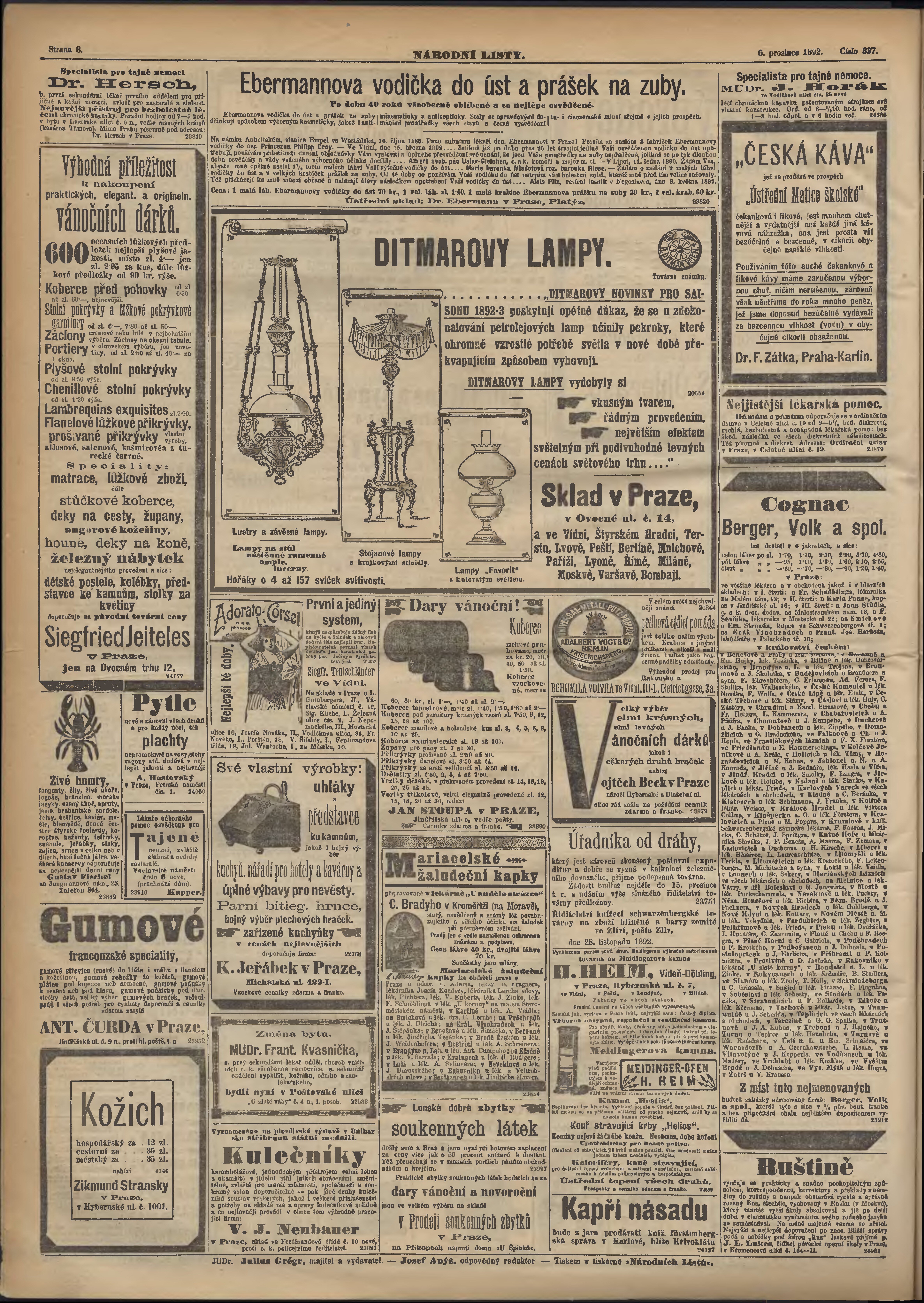 * Datum vydání výtisku: 6.12.1892 Číslo výtisku: 337