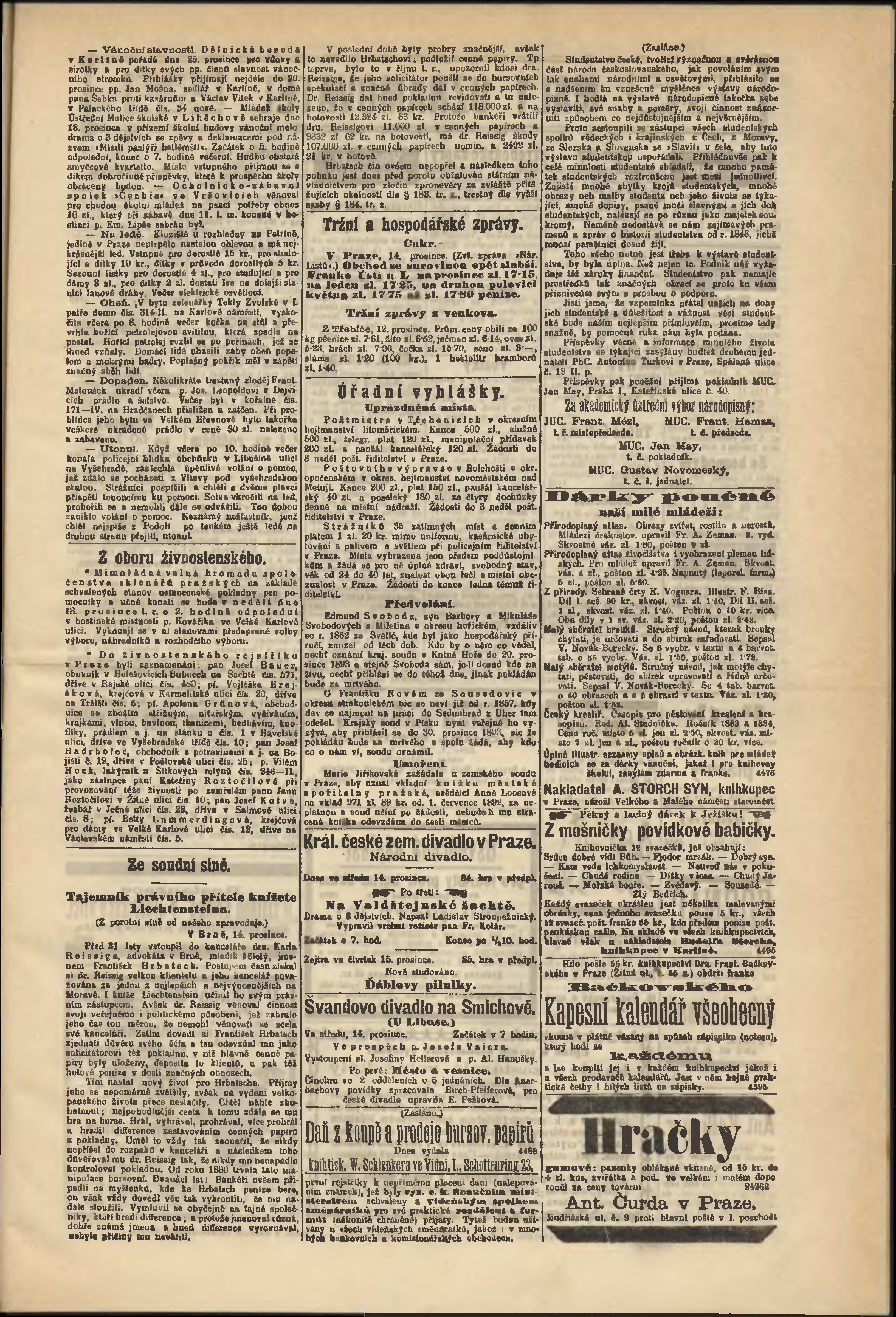 * Datum vydání výtisku: 14.12.1892 Číslo výtisku: 345 Poznámky k výtisku: odpolední vydání;