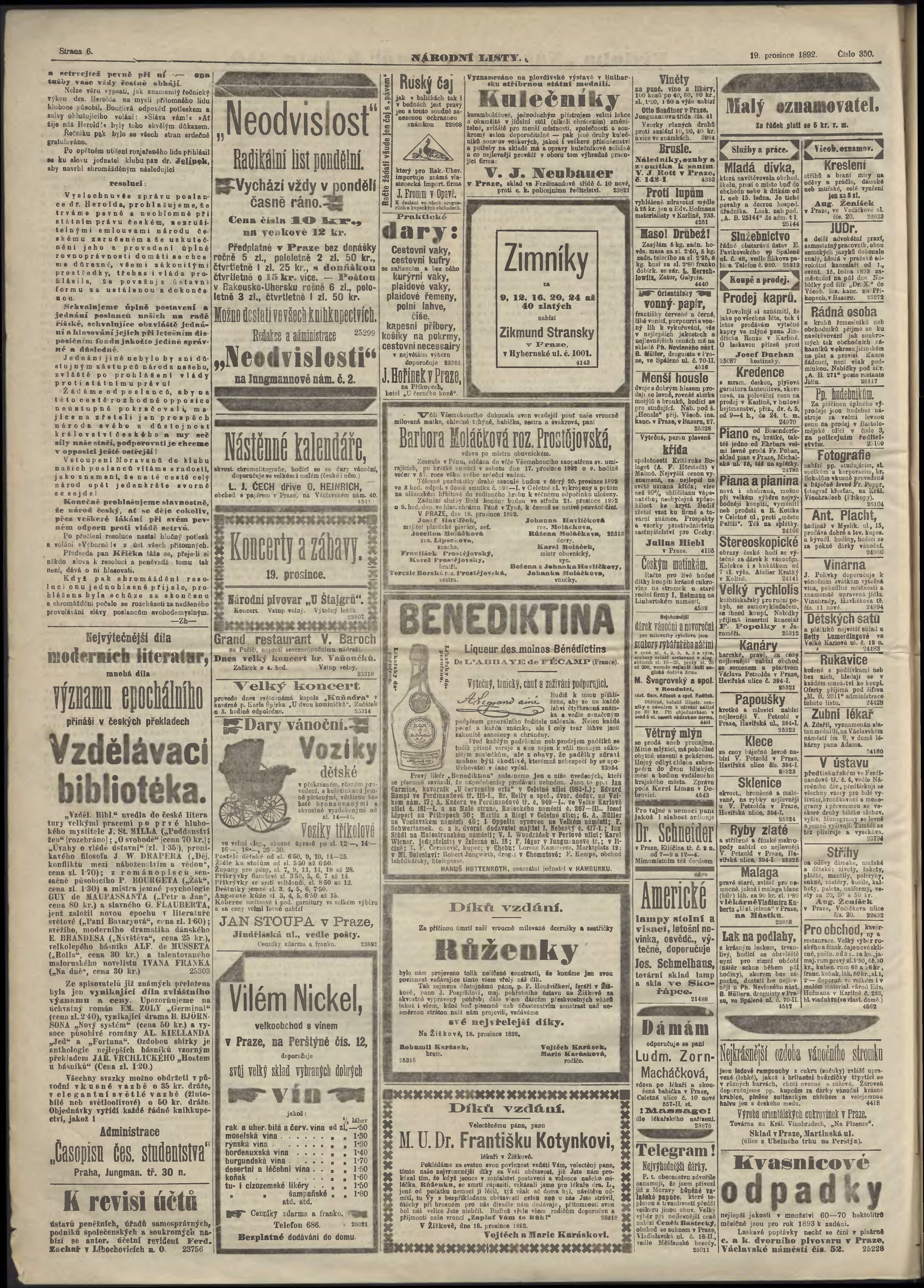 * Datum vydání výtisku: 19.12.1892 Číslo výtisku: 350