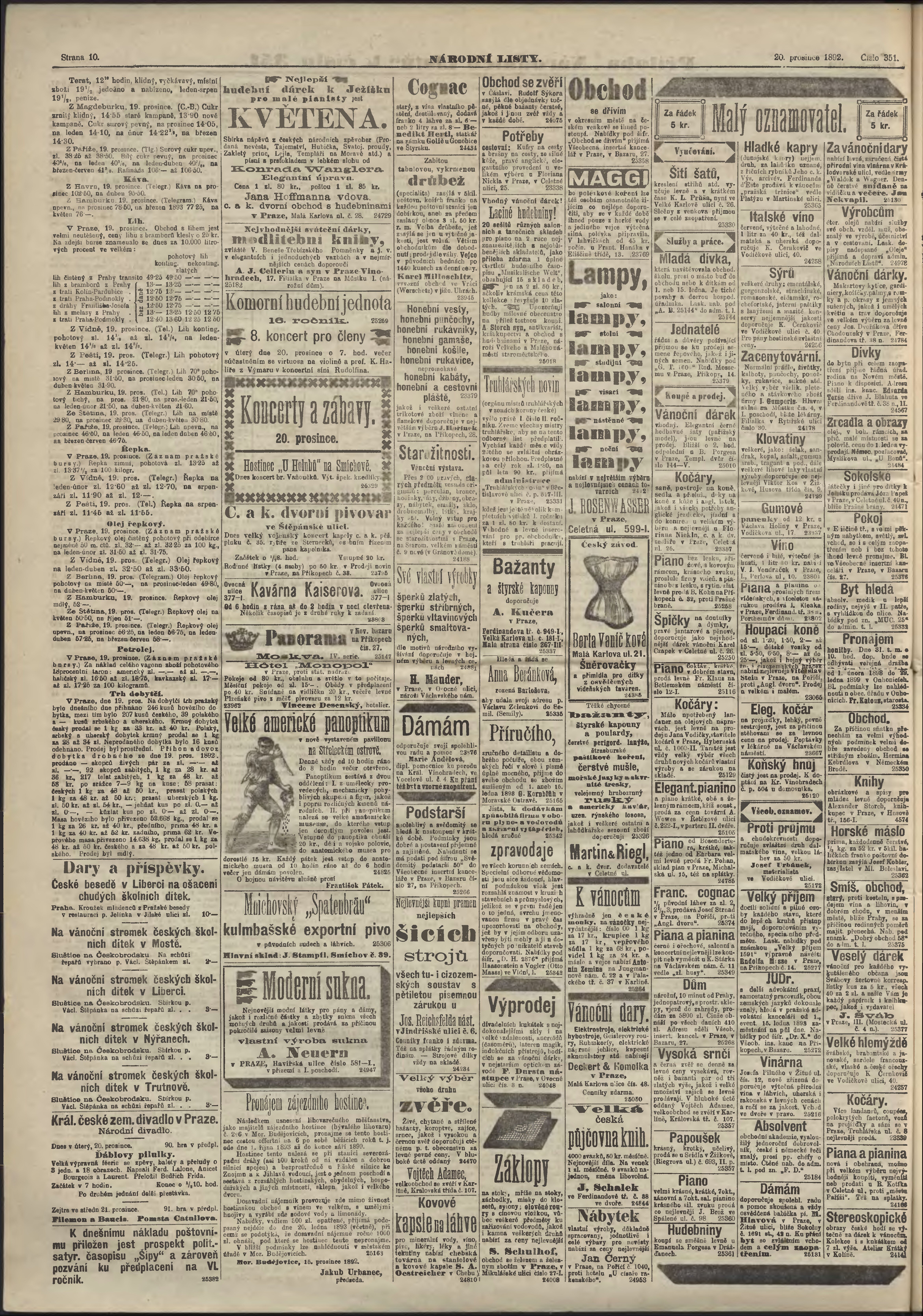 * Datum vydání výtisku: 20.12.1892 Číslo výtisku: 351