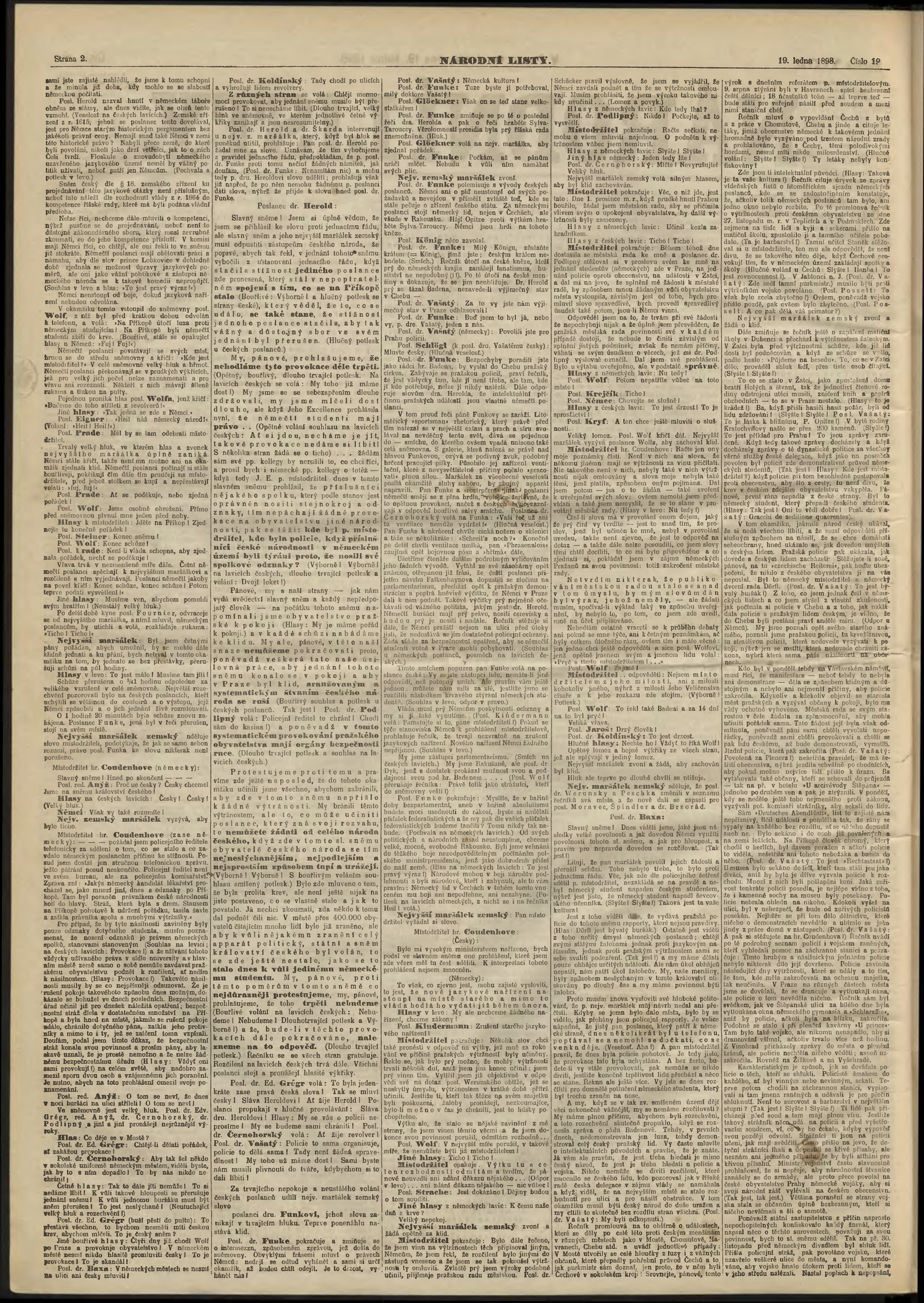 * Datum vydání výtisku: 19.1.1898 Číslo výtisku: 19