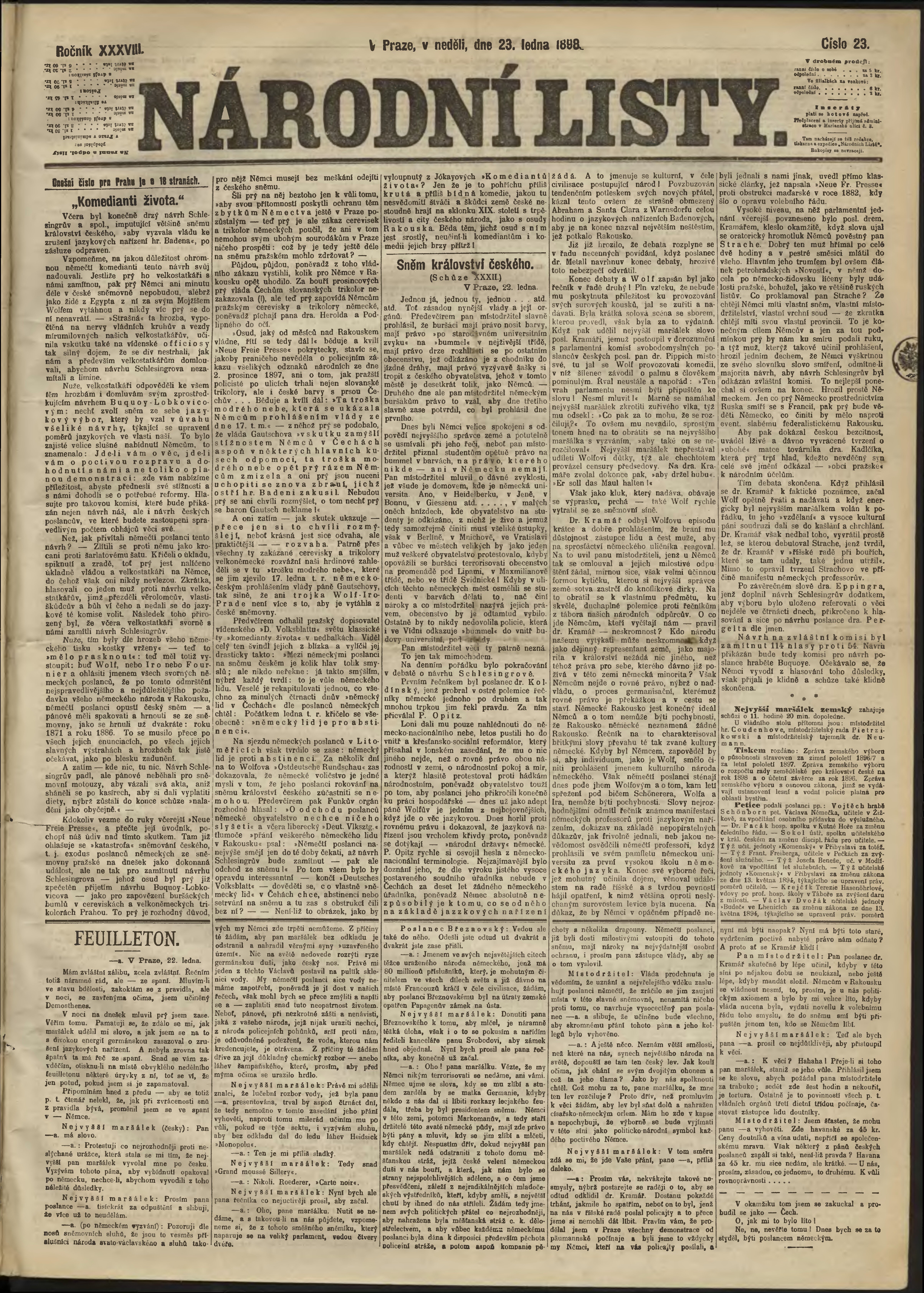 * Datum vydání výtisku: 23.1.1898 Číslo výtisku: 23