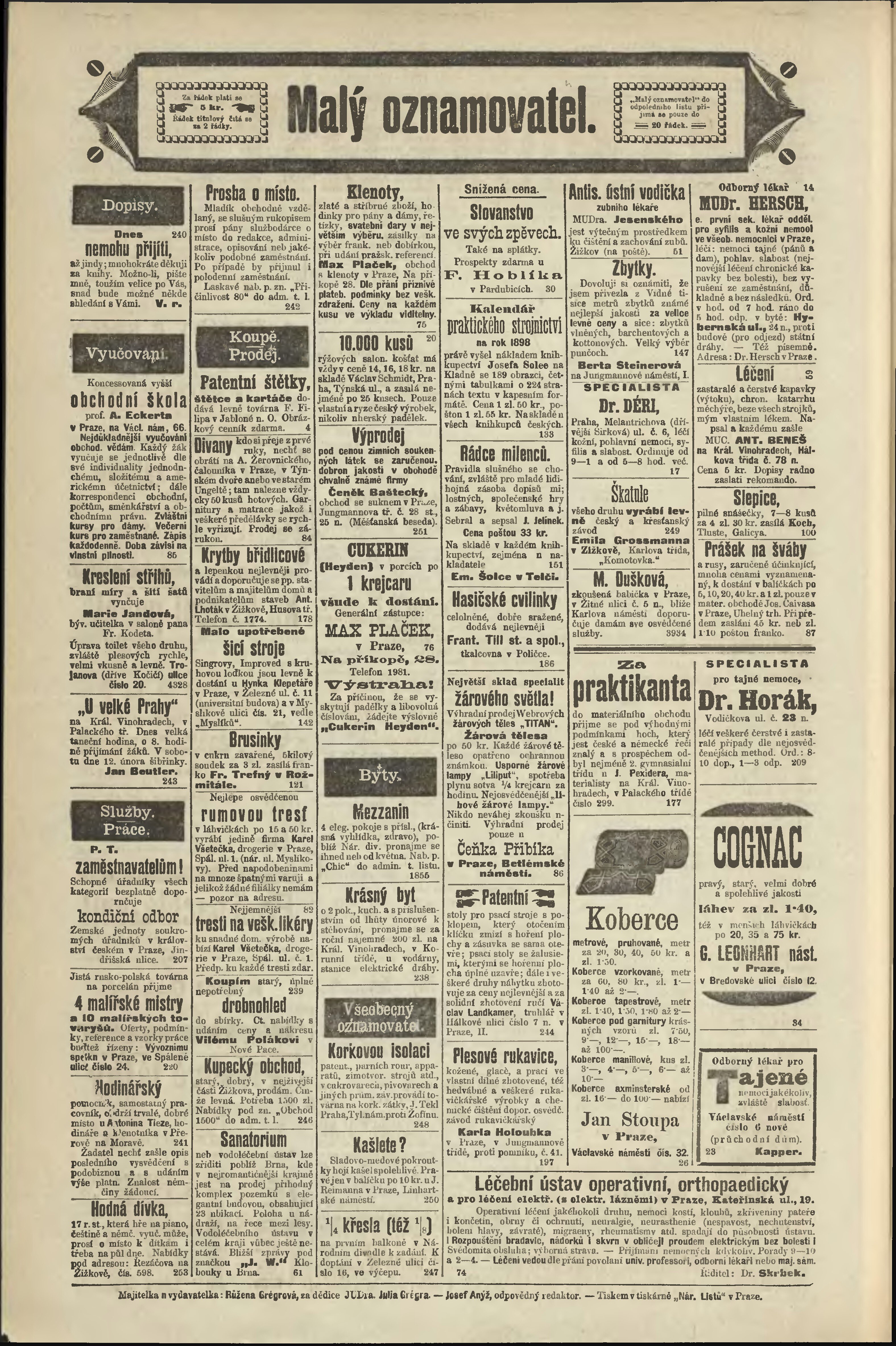 * Datum vydání výtisku: 25.1.1898 Číslo výtisku: 25 Poznámky k výtisku: odpolední vydání;