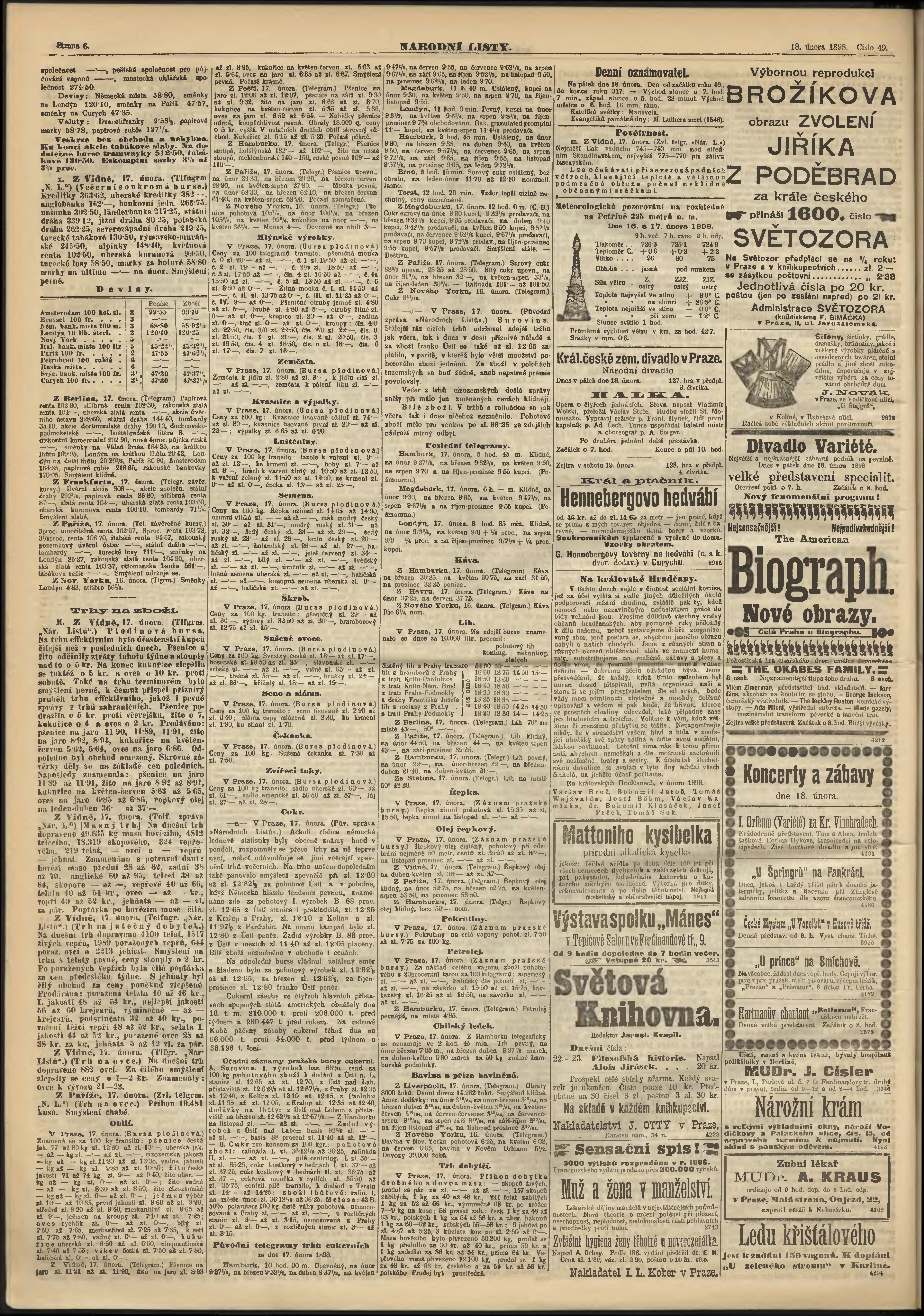 * Datum vydání výtisku: 18.2.1898 Číslo výtisku: 49