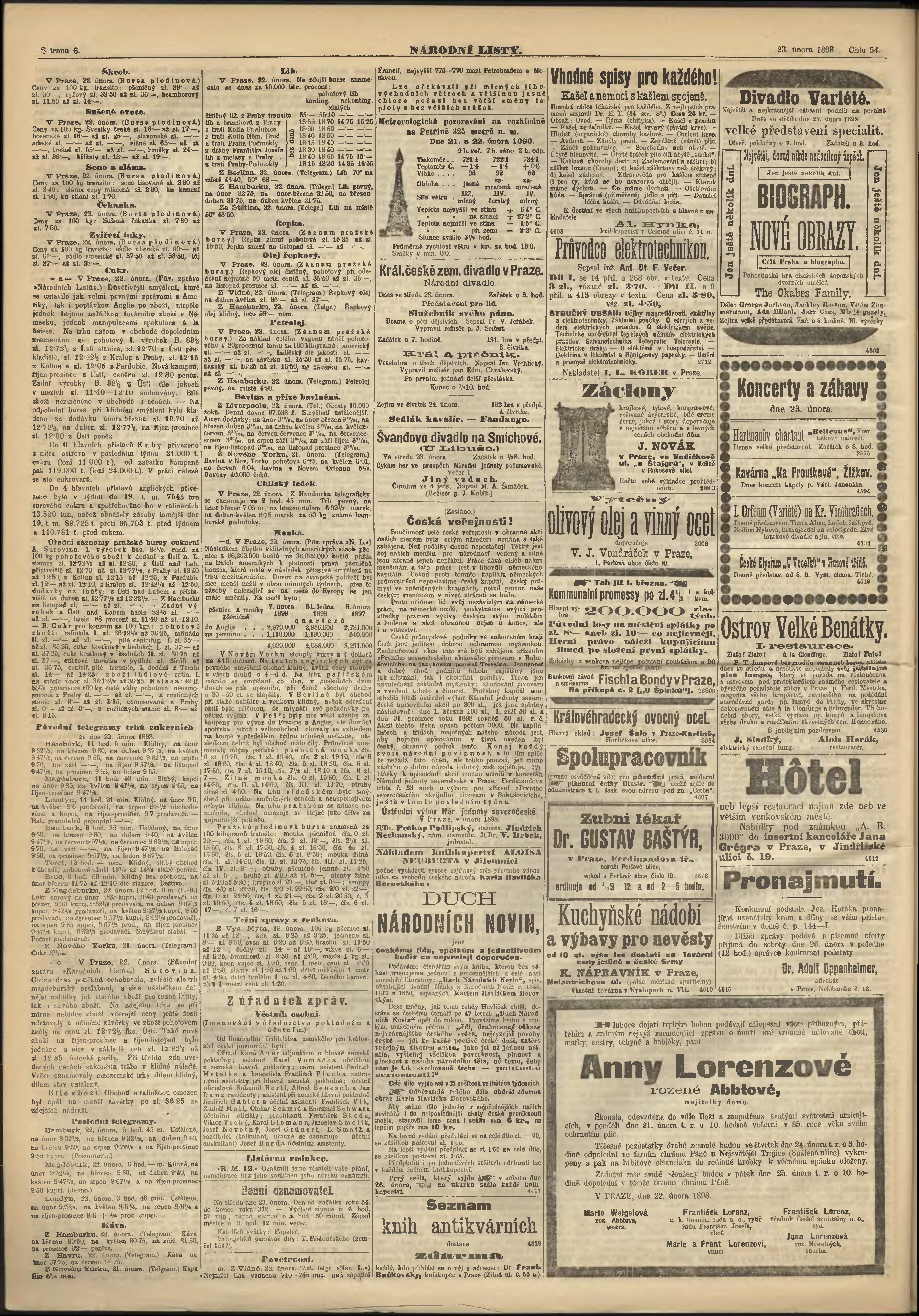 * Datum vydání výtisku: 23.2.1898 Číslo výtisku: 54