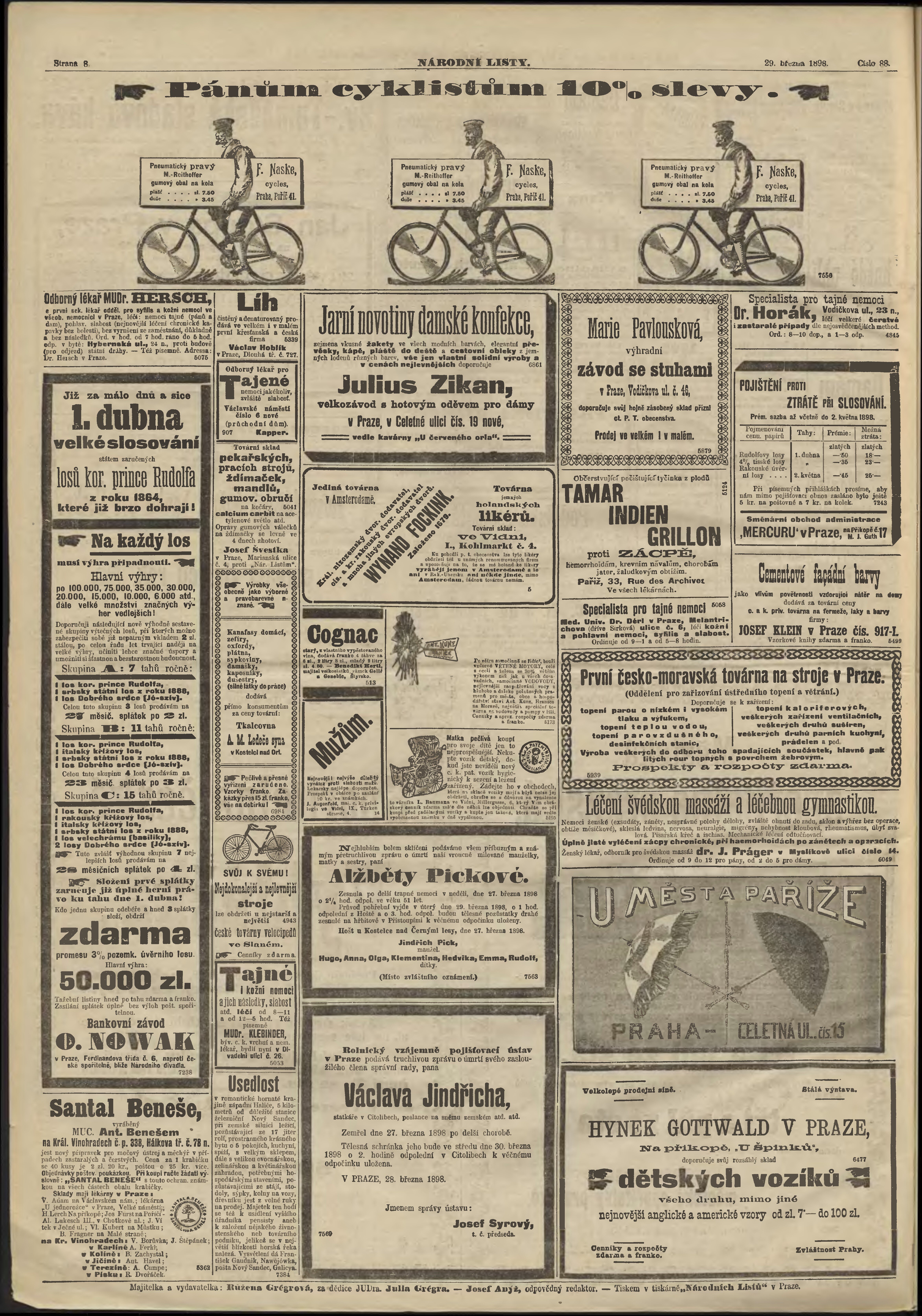 * Datum vydání výtisku: 29.3.1898 Číslo výtisku: 88