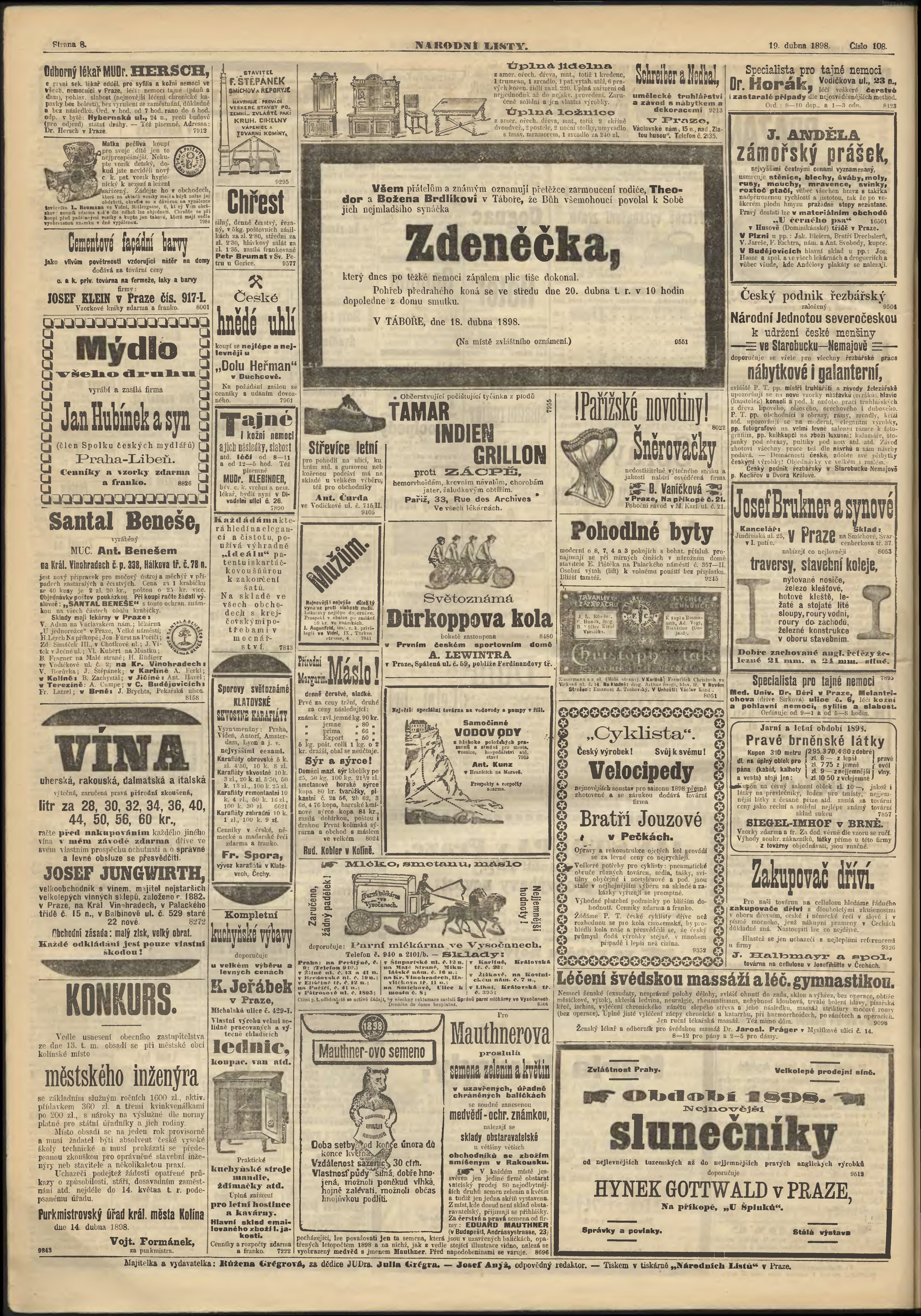 * Datum vydání výtisku: 19.4.1898 Číslo výtisku: 108