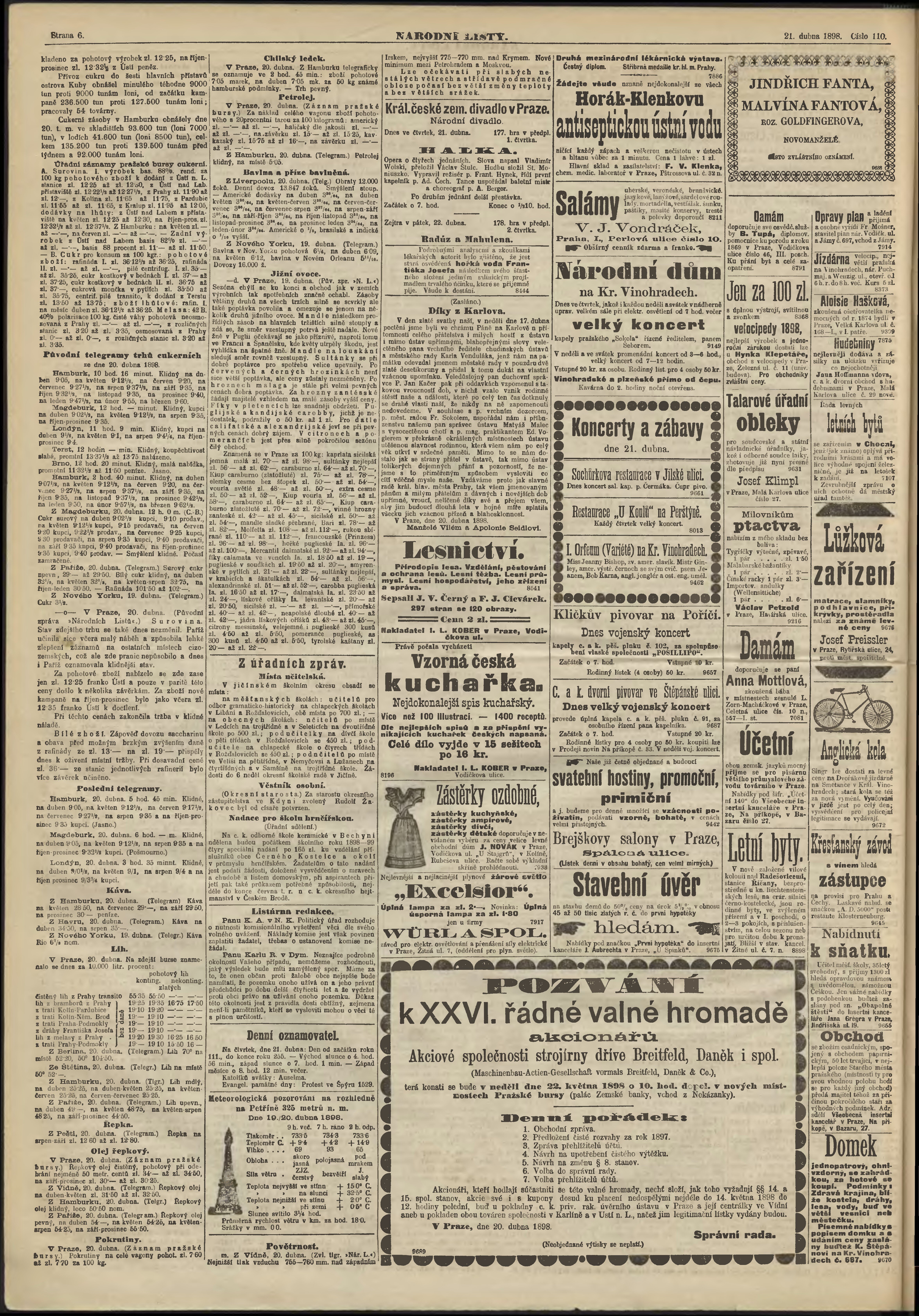 * Datum vydání výtisku: 21.4.1898 Číslo výtisku: 110