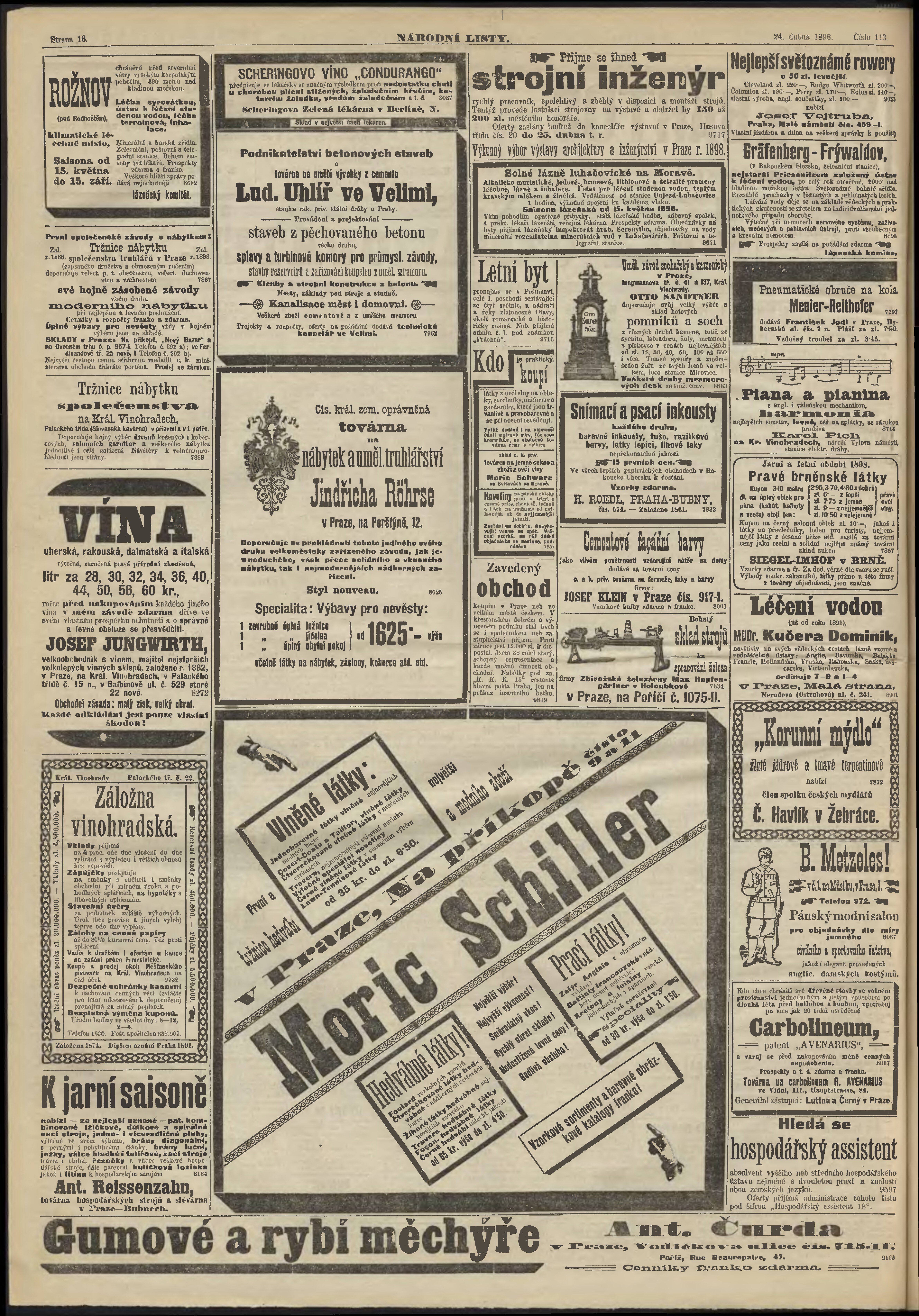 * Datum vydání výtisku: 24.4.1898 Číslo výtisku: 113