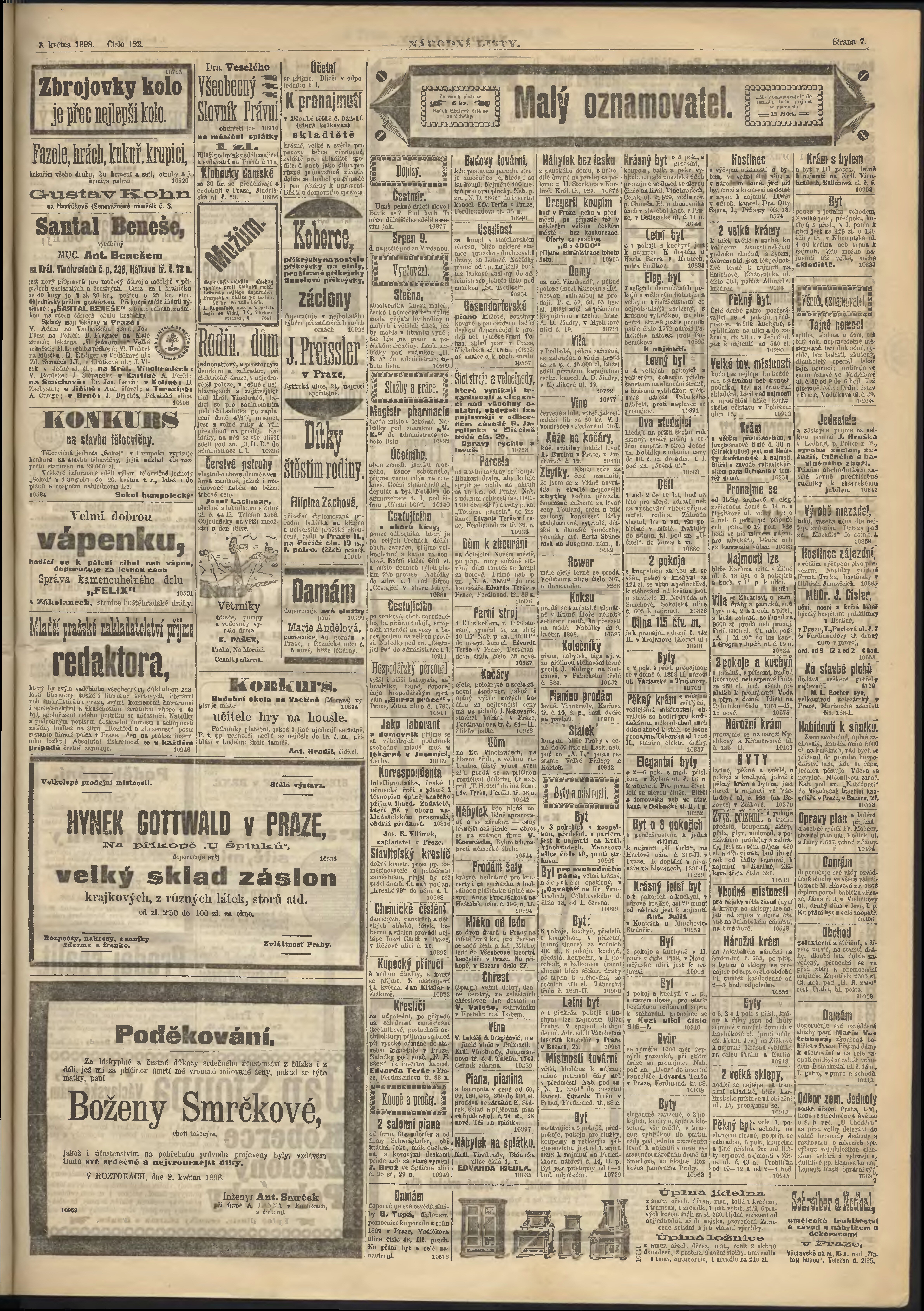 * Datum vydání výtisku: 3.5.1898 Číslo výtisku: 122