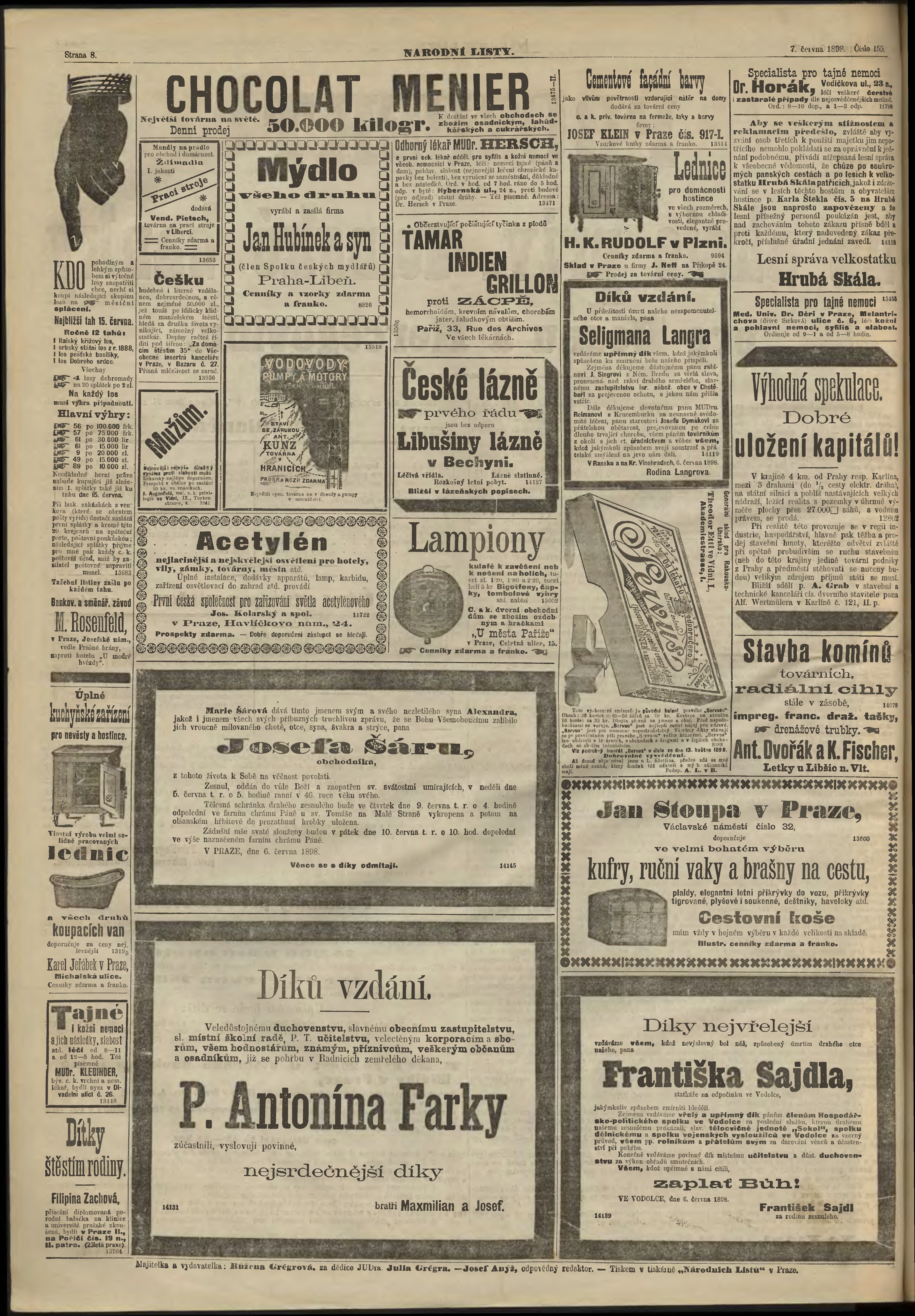 * Datum vydání výtisku: 7.6.1898 Číslo výtisku: 155