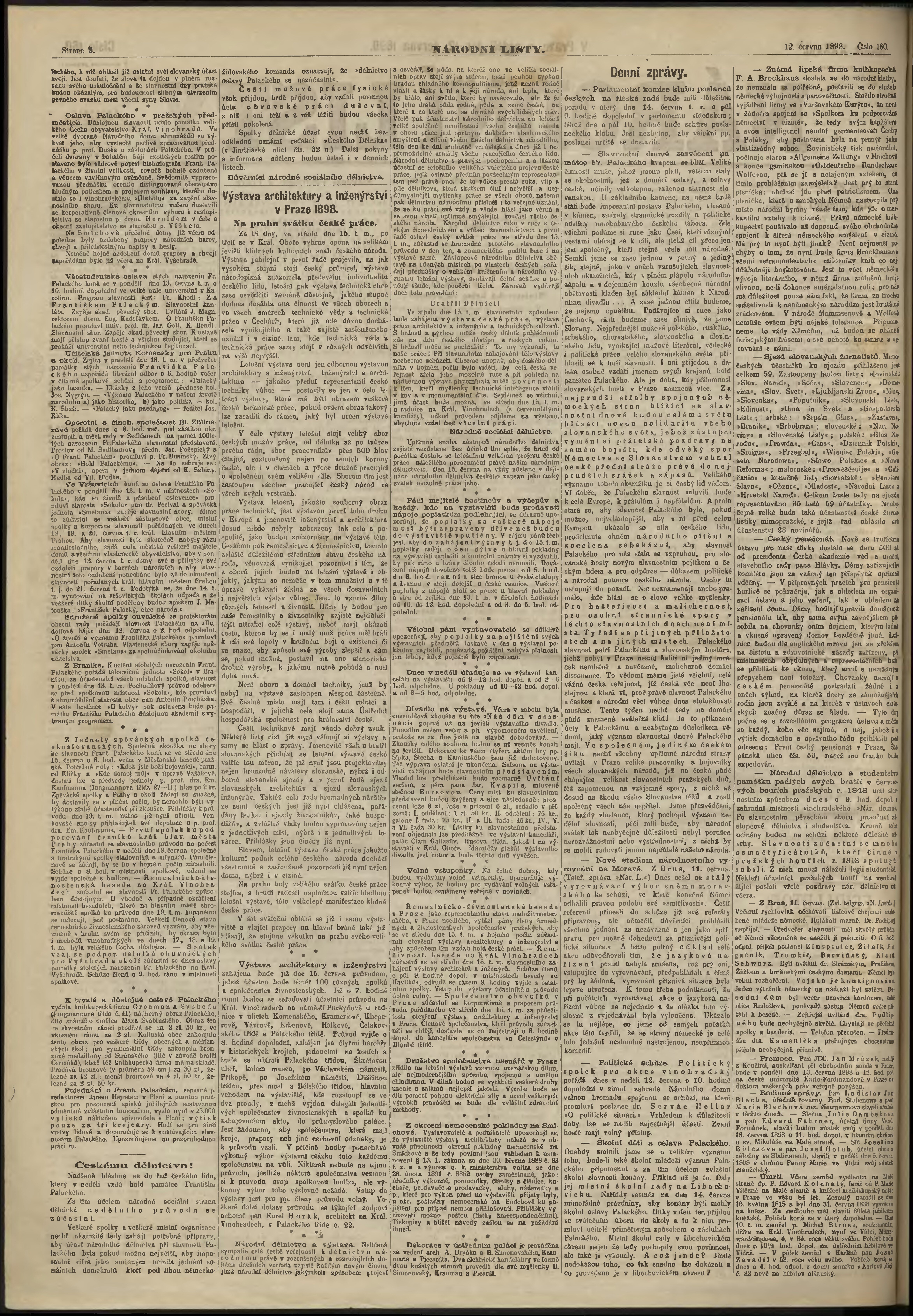* Datum vydání výtisku: 12.6.1898 Číslo výtisku: 160