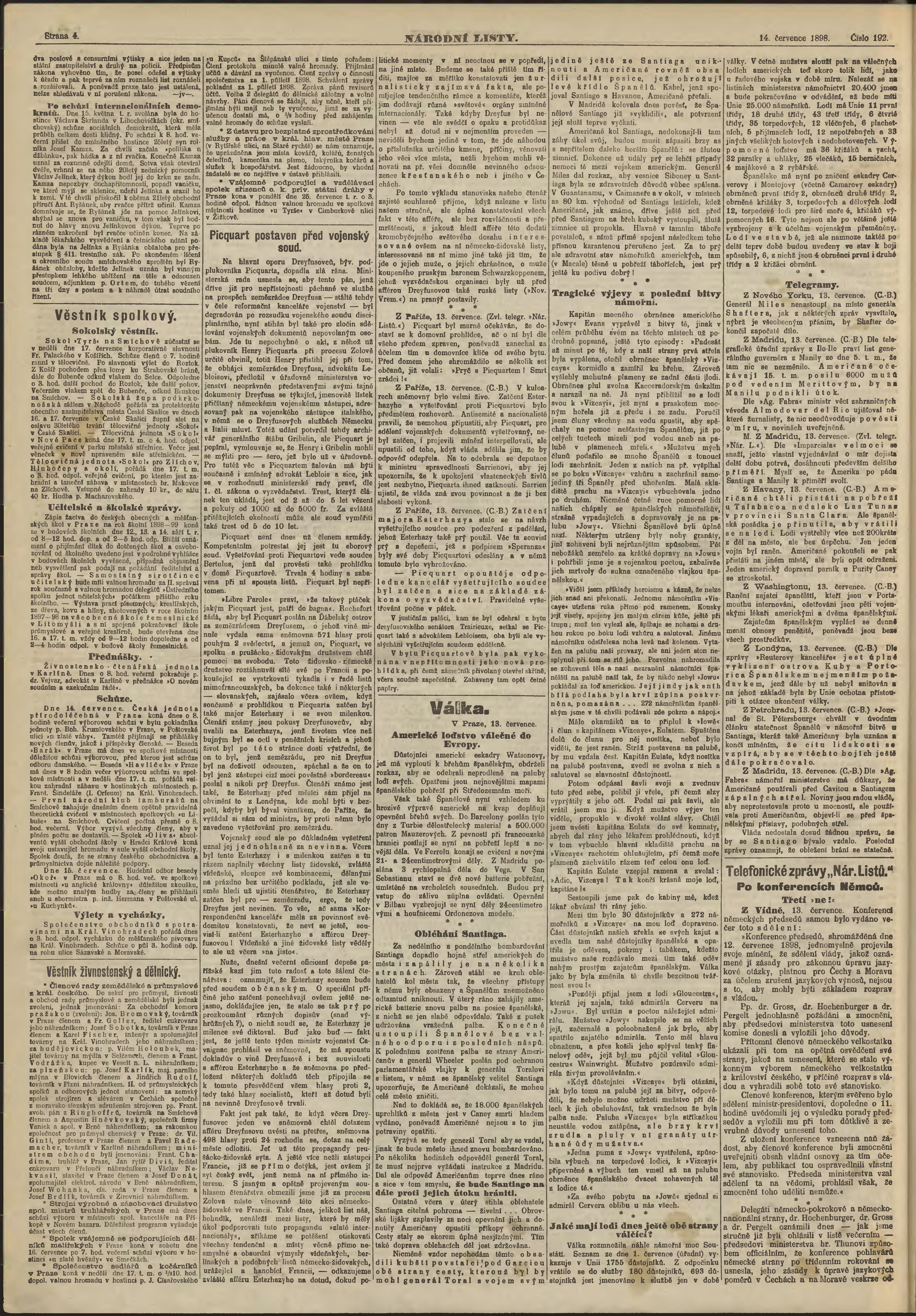 * Datum vydání výtisku: 14.7.1898 Číslo výtisku: 192