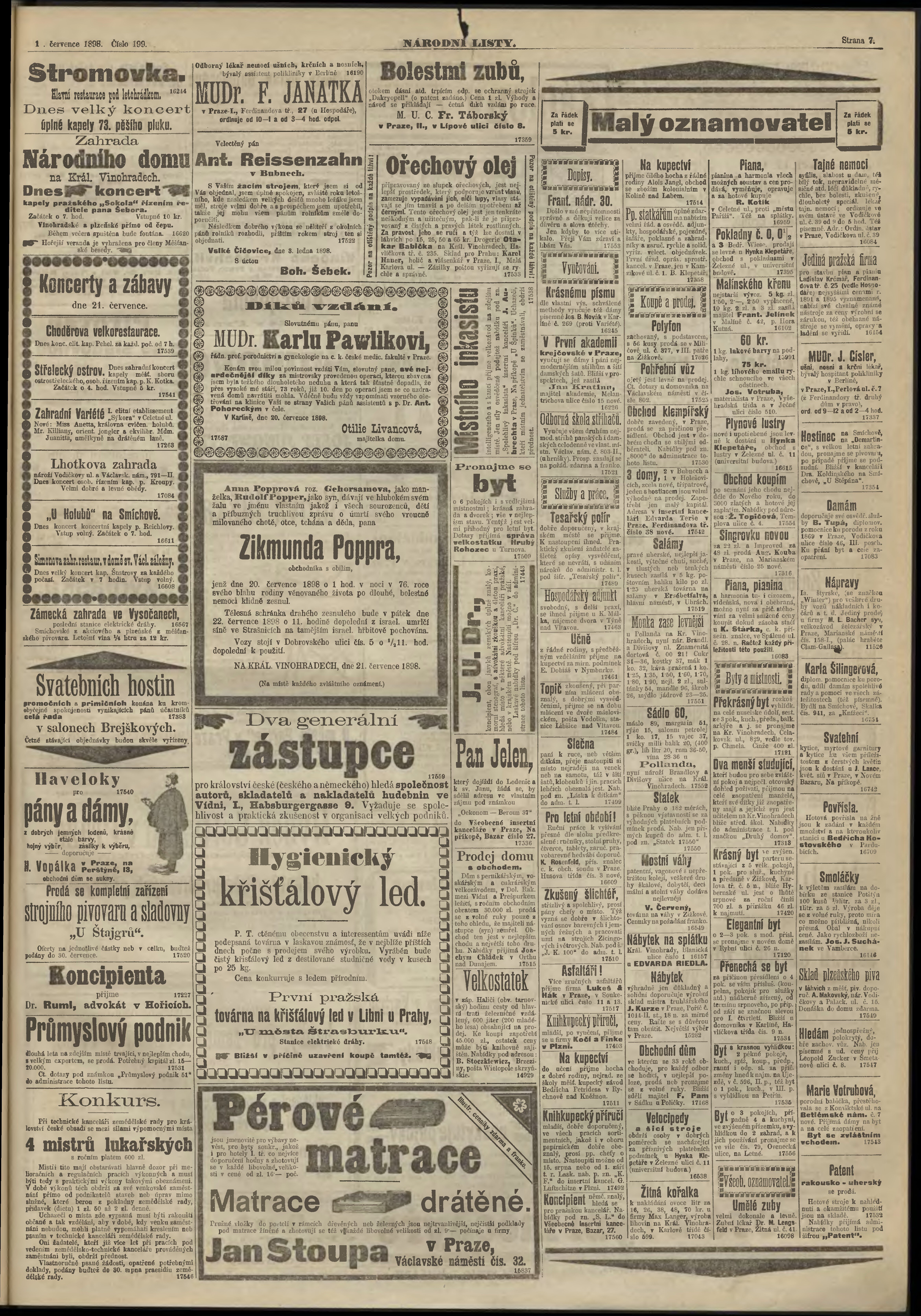 * Datum vydání výtisku: 21.7.1898 Číslo výtisku: 199