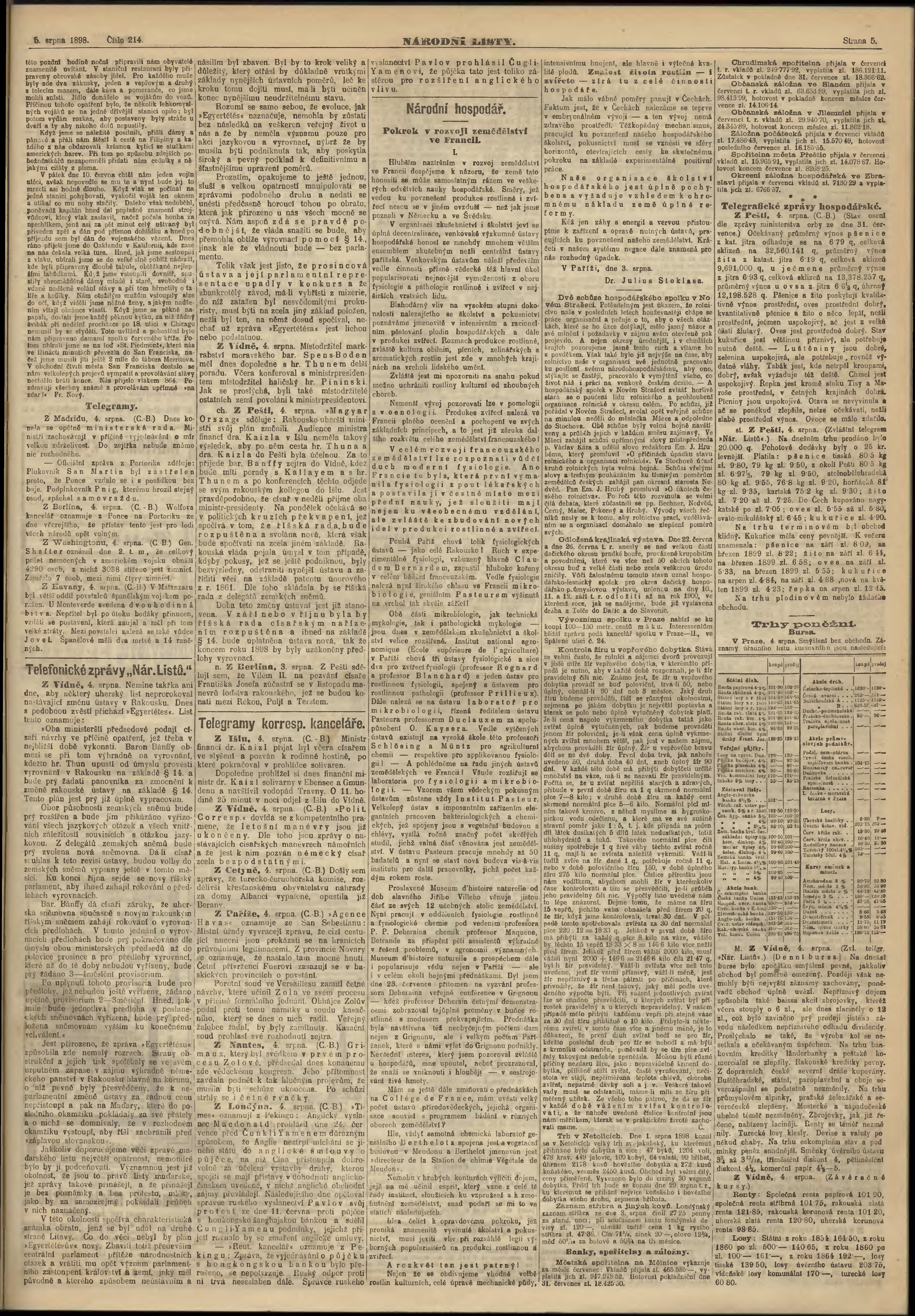* Datum vydání výtisku: 5.8.1898 Číslo výtisku: 214