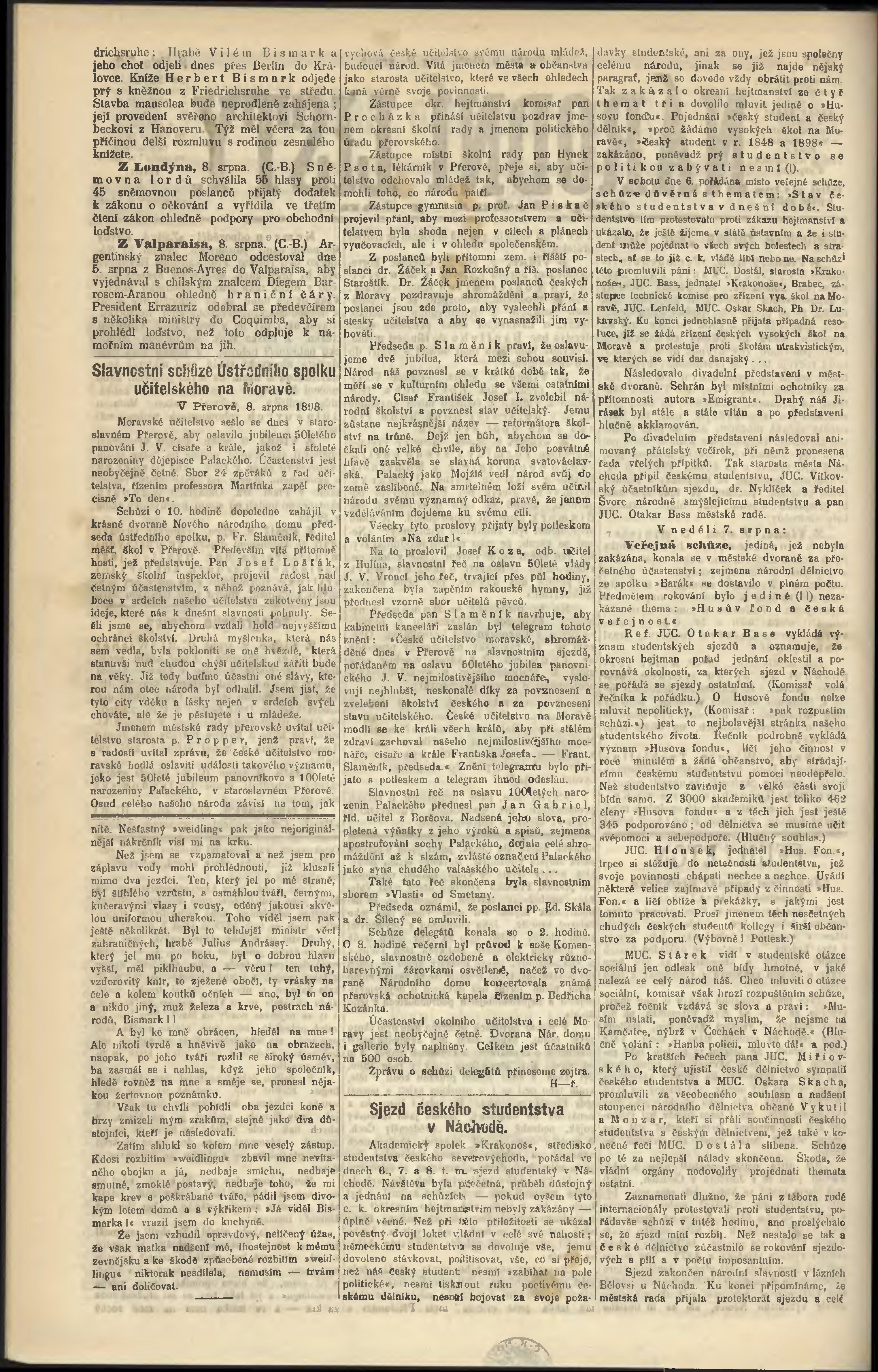 * Datum vydání výtisku: 9.8.1898 Číslo výtisku: 218 Poznámky k výtisku: odpolední vydání;