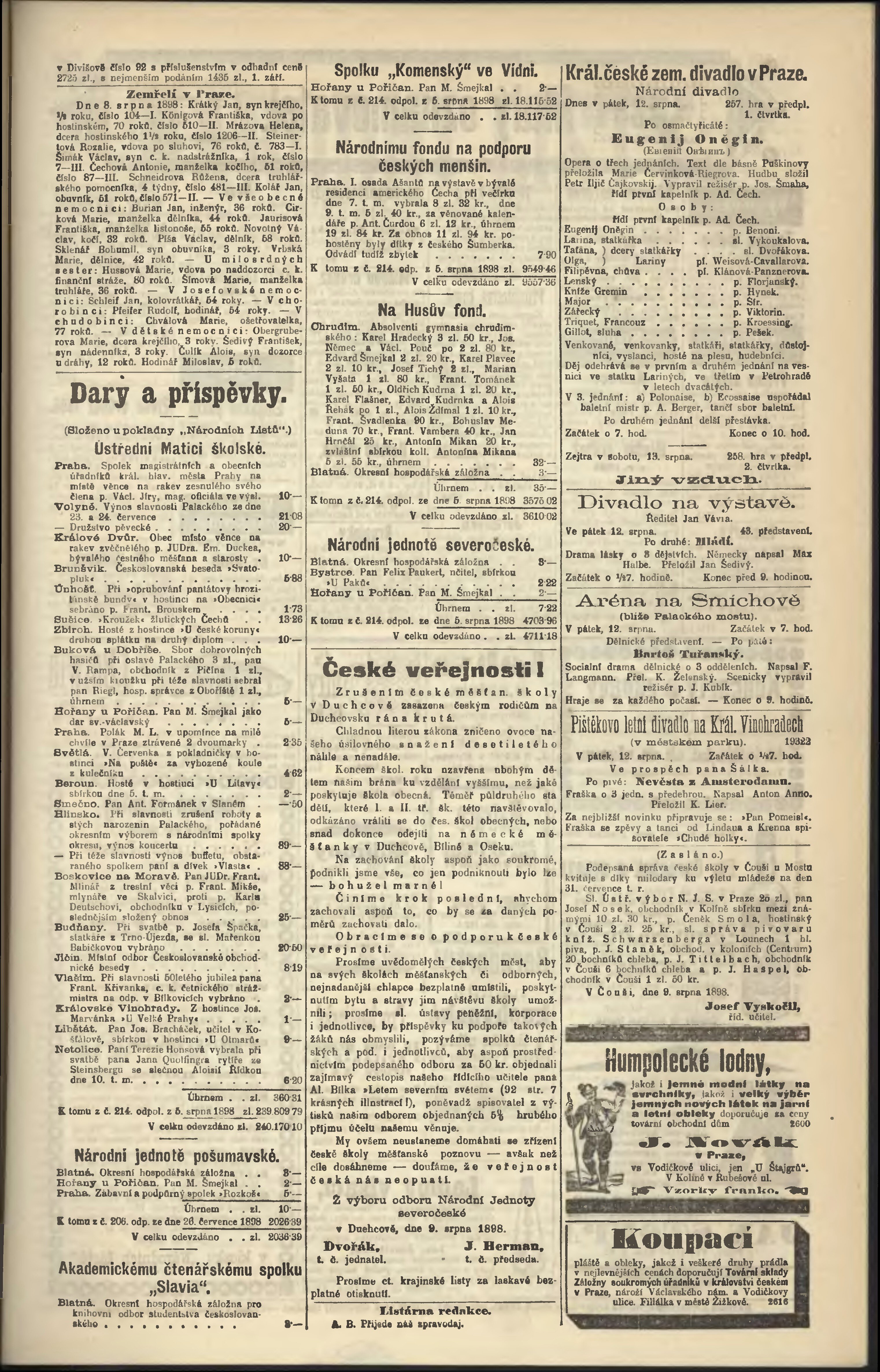 * Datum vydání výtisku: 12.8.1898 Číslo výtisku: 221 Poznámky k výtisku: odpolední vydání;