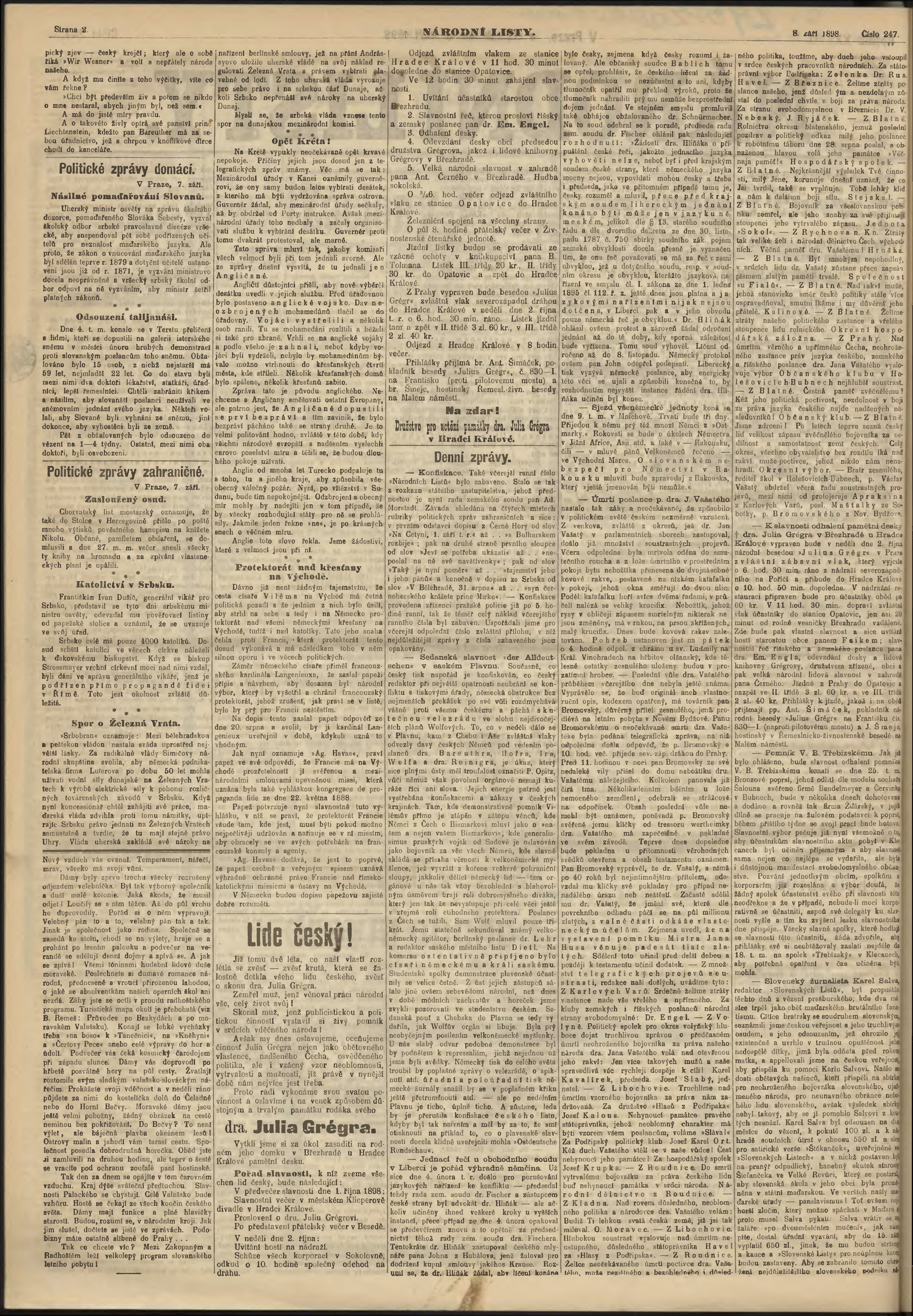 * Datum vydání výtisku: 8.9.1898 Číslo výtisku: 247