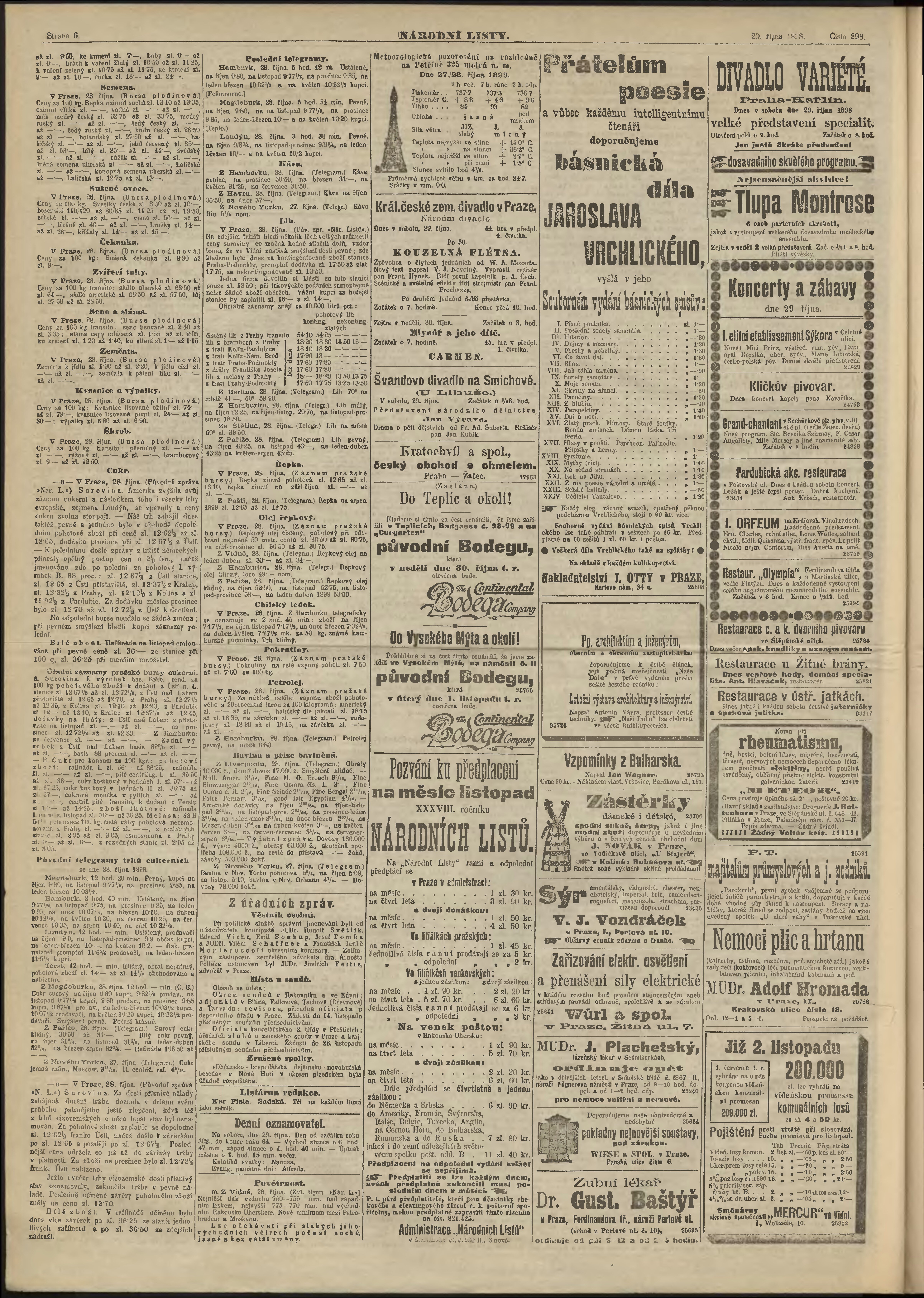 * Datum vydání výtisku: 29.10.1898 Číslo výtisku: 298