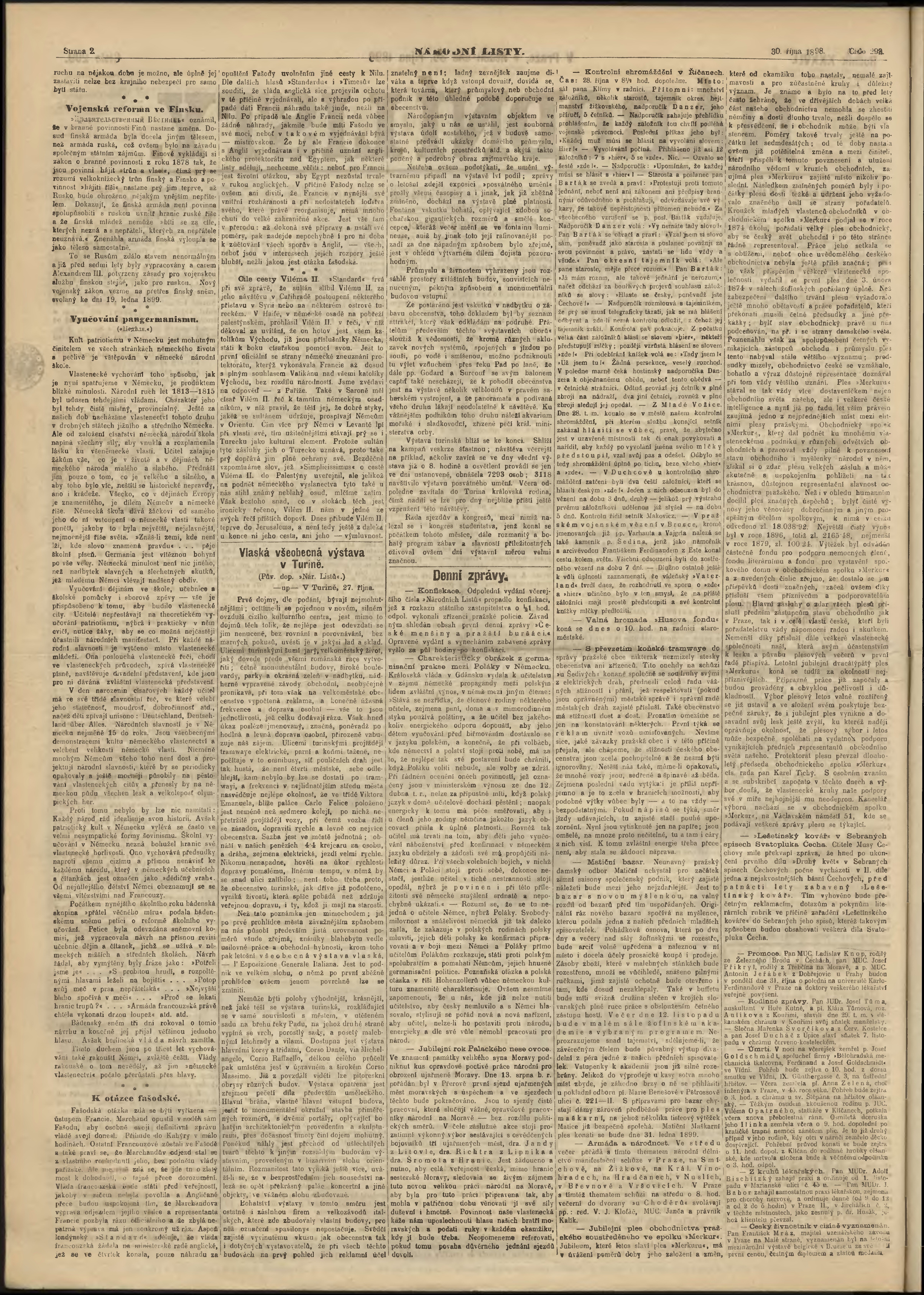 * Datum vydání výtisku: 30.10.1898 Číslo výtisku: 299