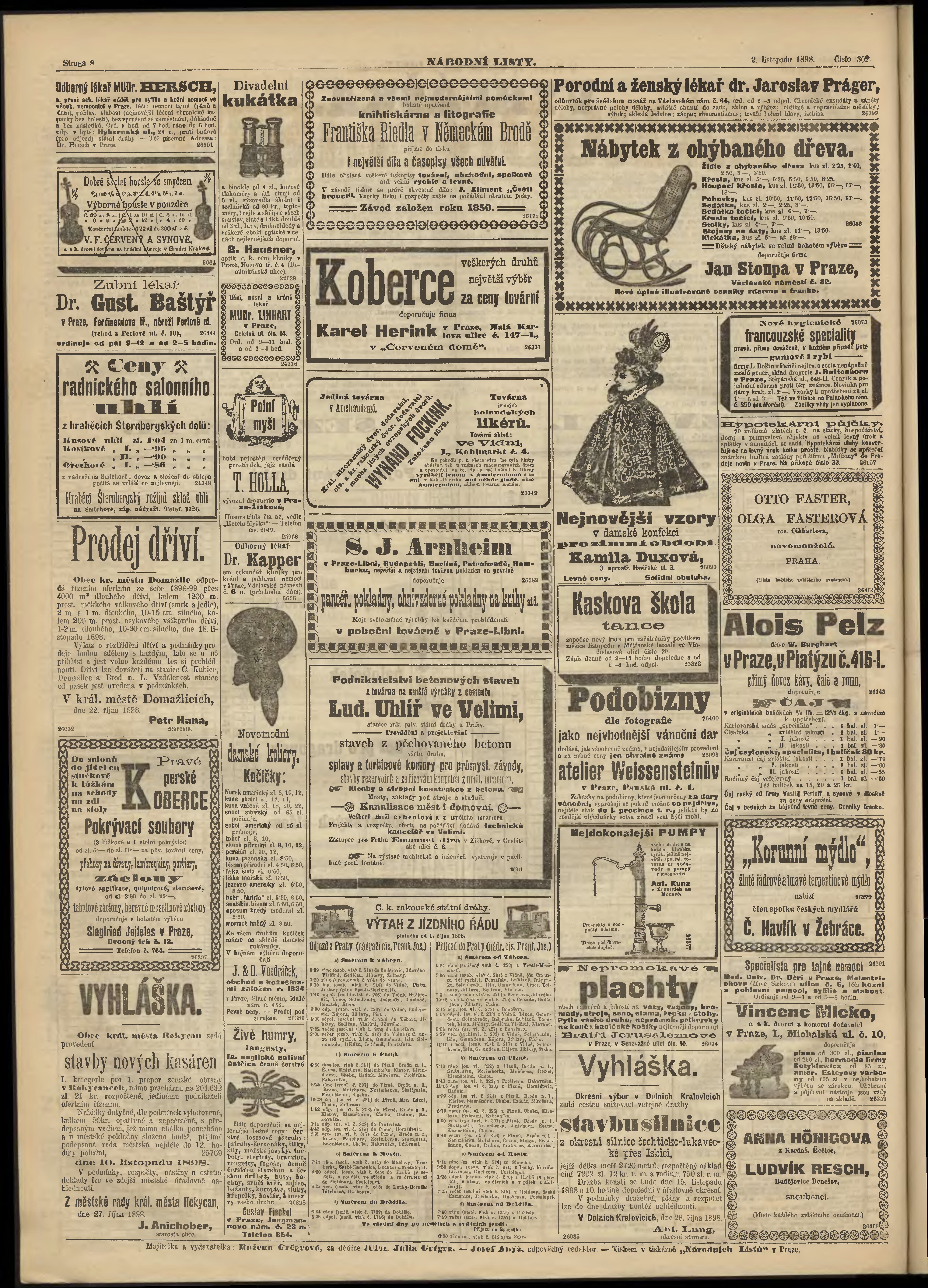 * Datum vydání výtisku: 2.11.1898 Číslo výtisku: 302