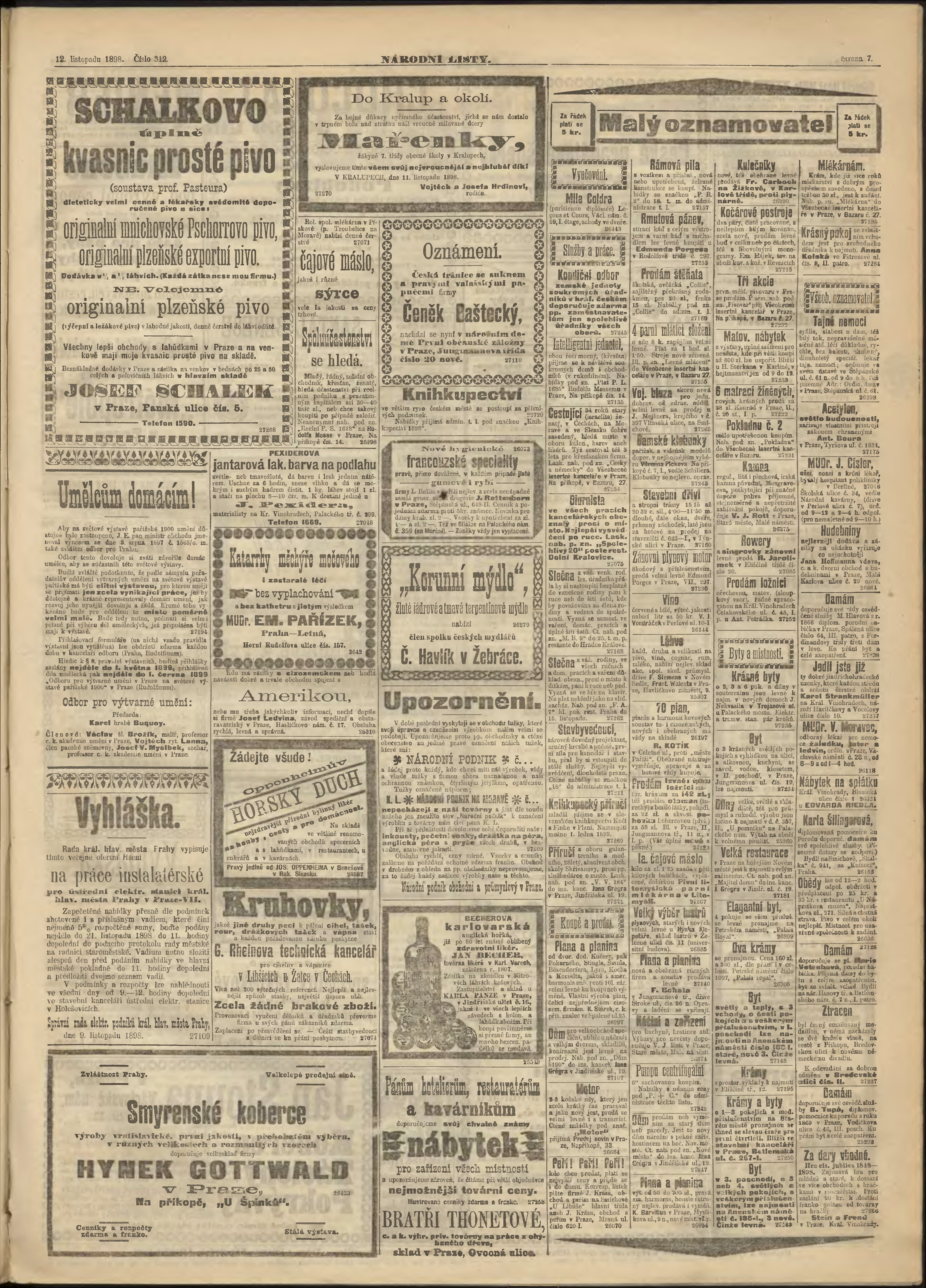 * Datum vydání výtisku: 12.11.1898 Číslo výtisku: 312