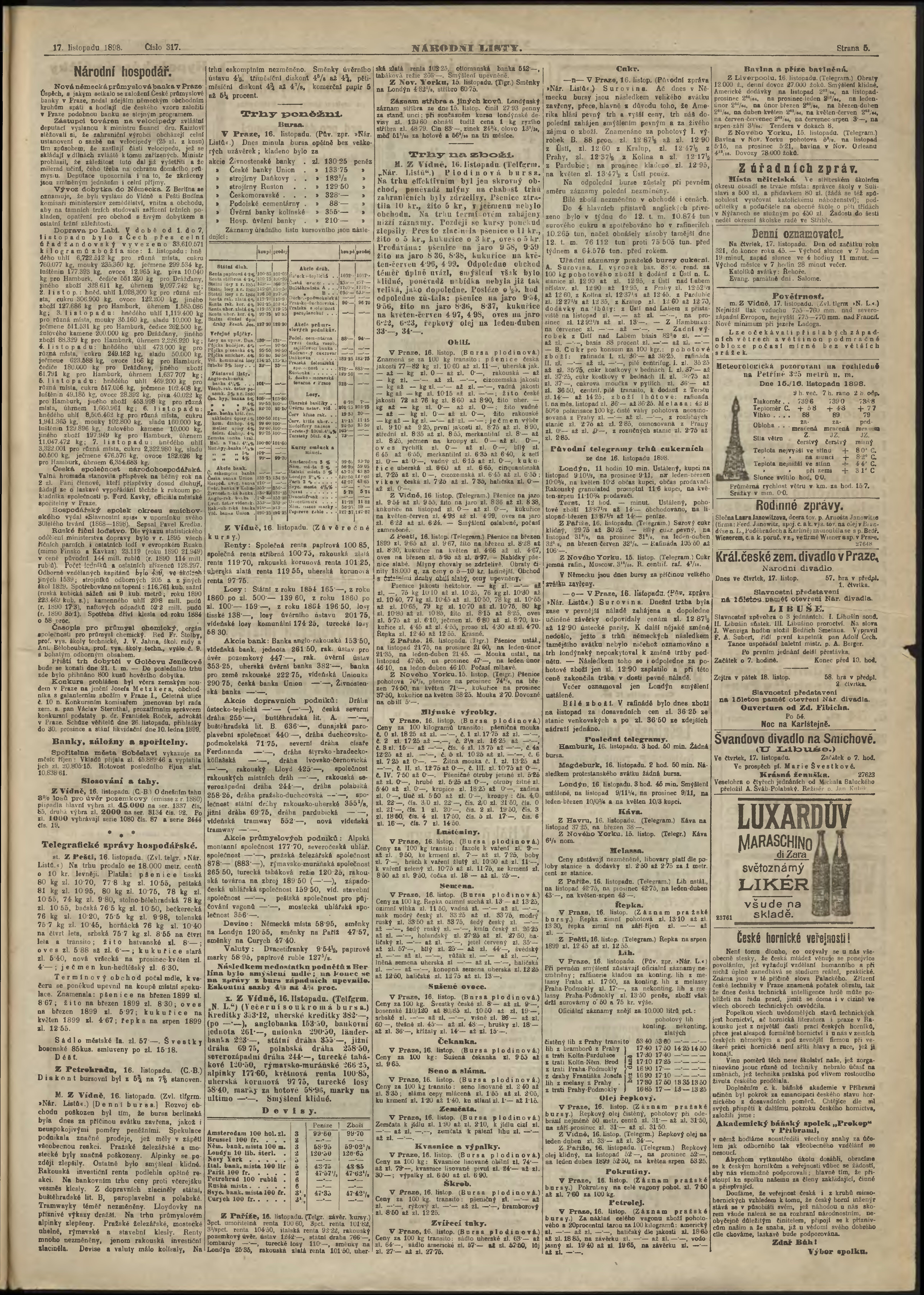 * Datum vydání výtisku: 17.11.1898 Číslo výtisku: 317