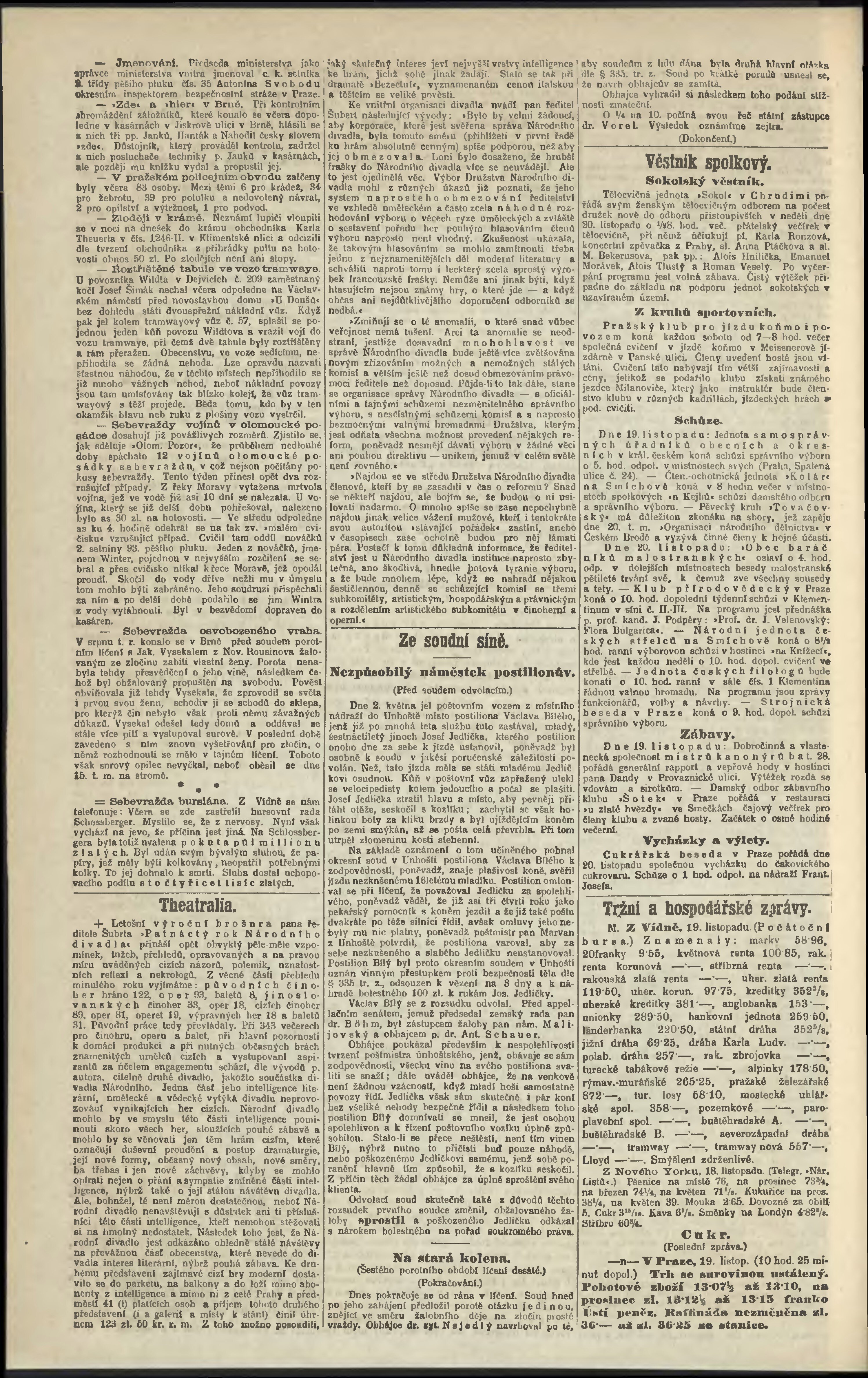 * Datum vydání výtisku: 19.11.1898 Číslo výtisku: 319 Poznámky k výtisku: odpolední vydání;