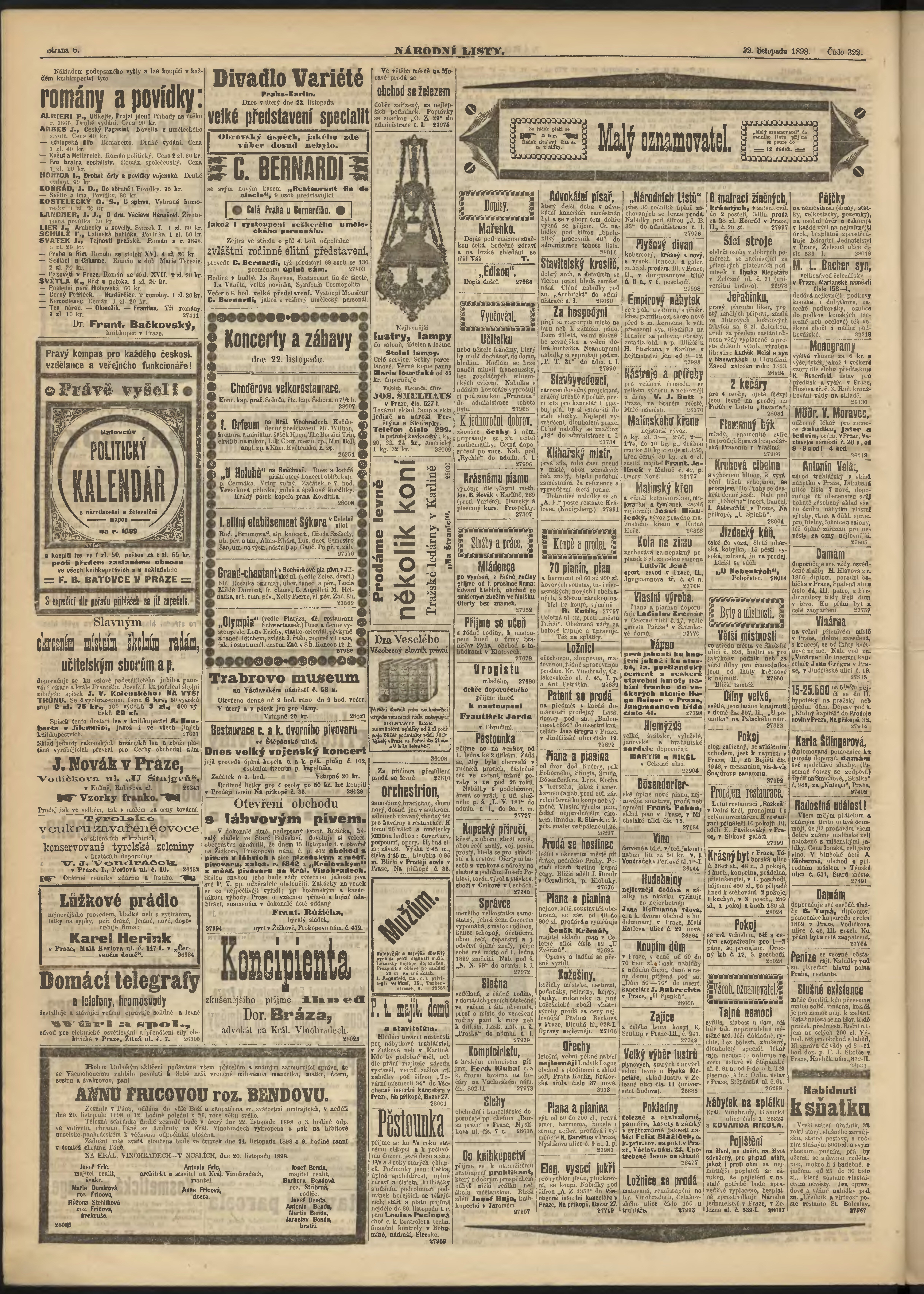 * Datum vydání výtisku: 22.11.1898 Číslo výtisku: 322