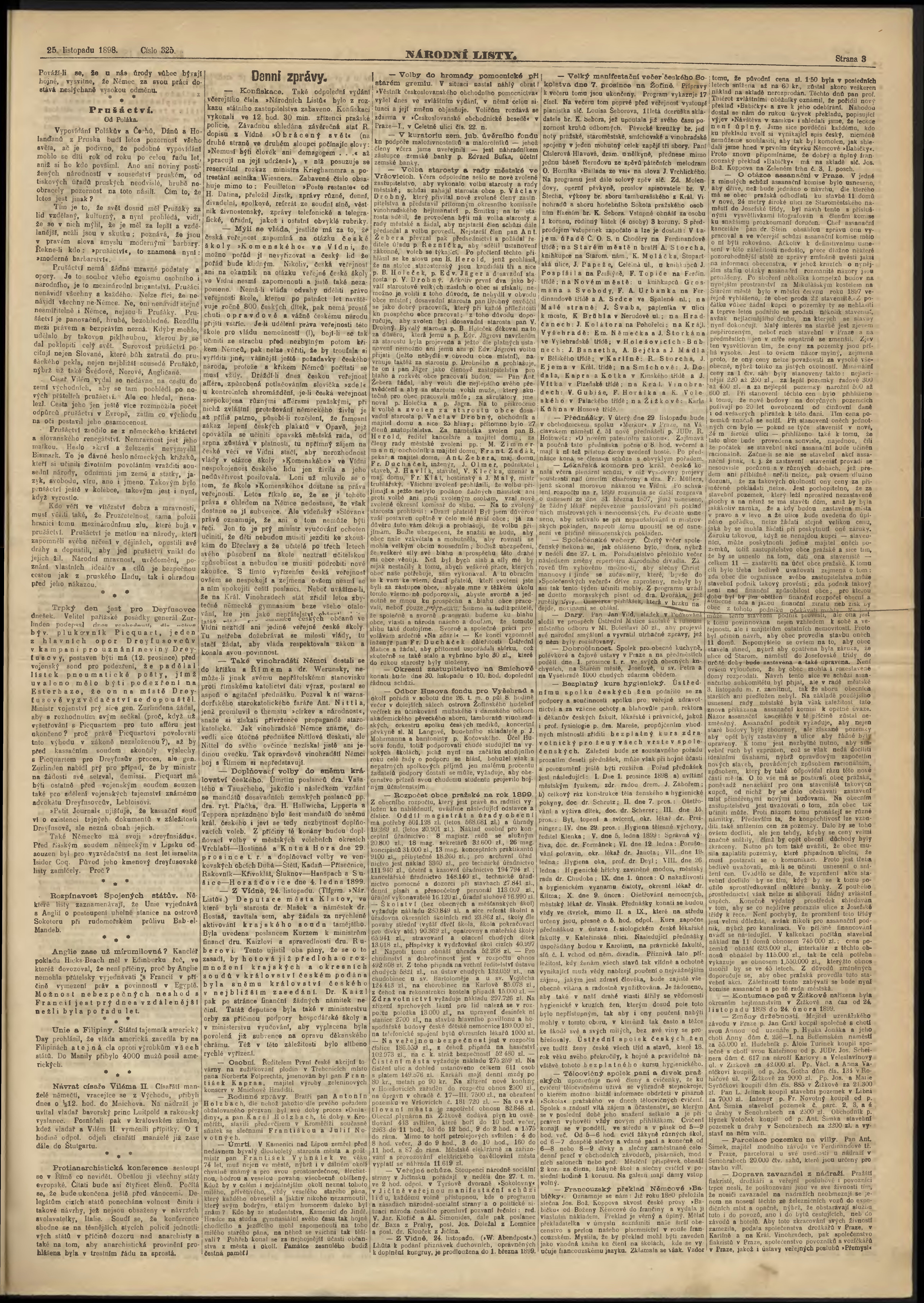 * Datum vydání výtisku: 25.11.1898 Číslo výtisku: 325