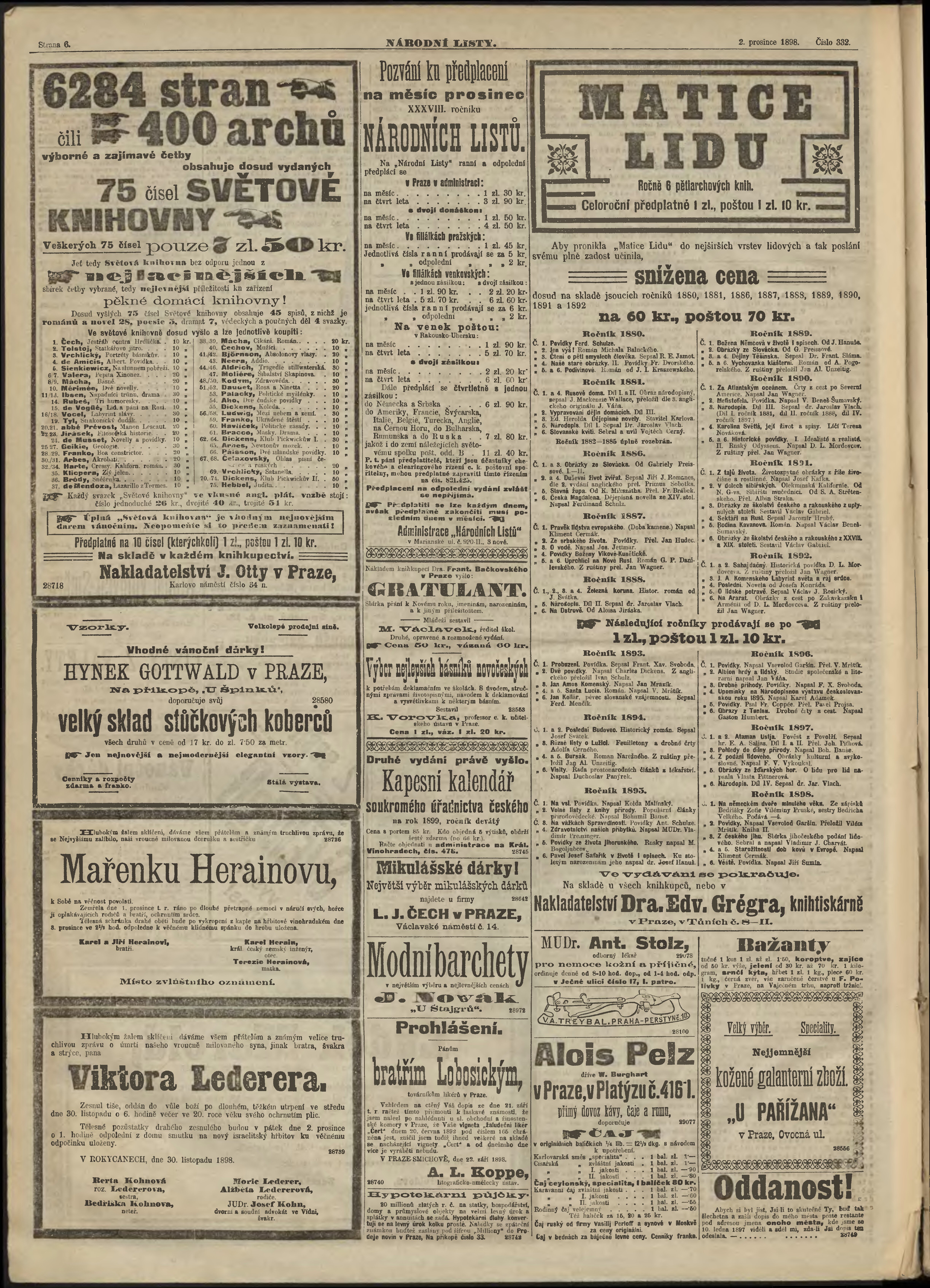 * Datum vydání výtisku: 2.12.1898 Číslo výtisku: 332