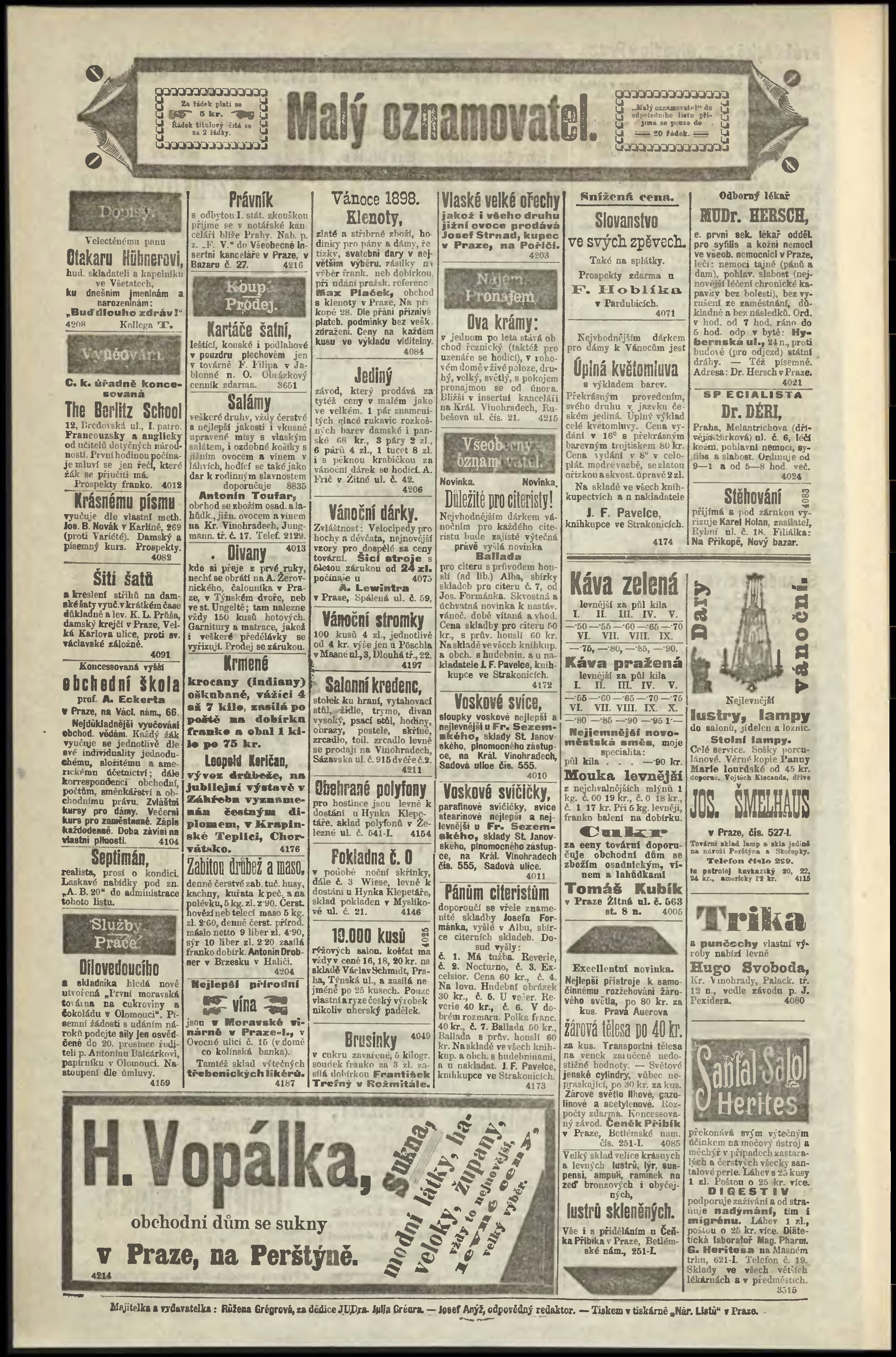 * Datum vydání výtisku: 15.12.1898 Číslo výtisku: 345 Poznámky k výtisku: odpolední vydání;
