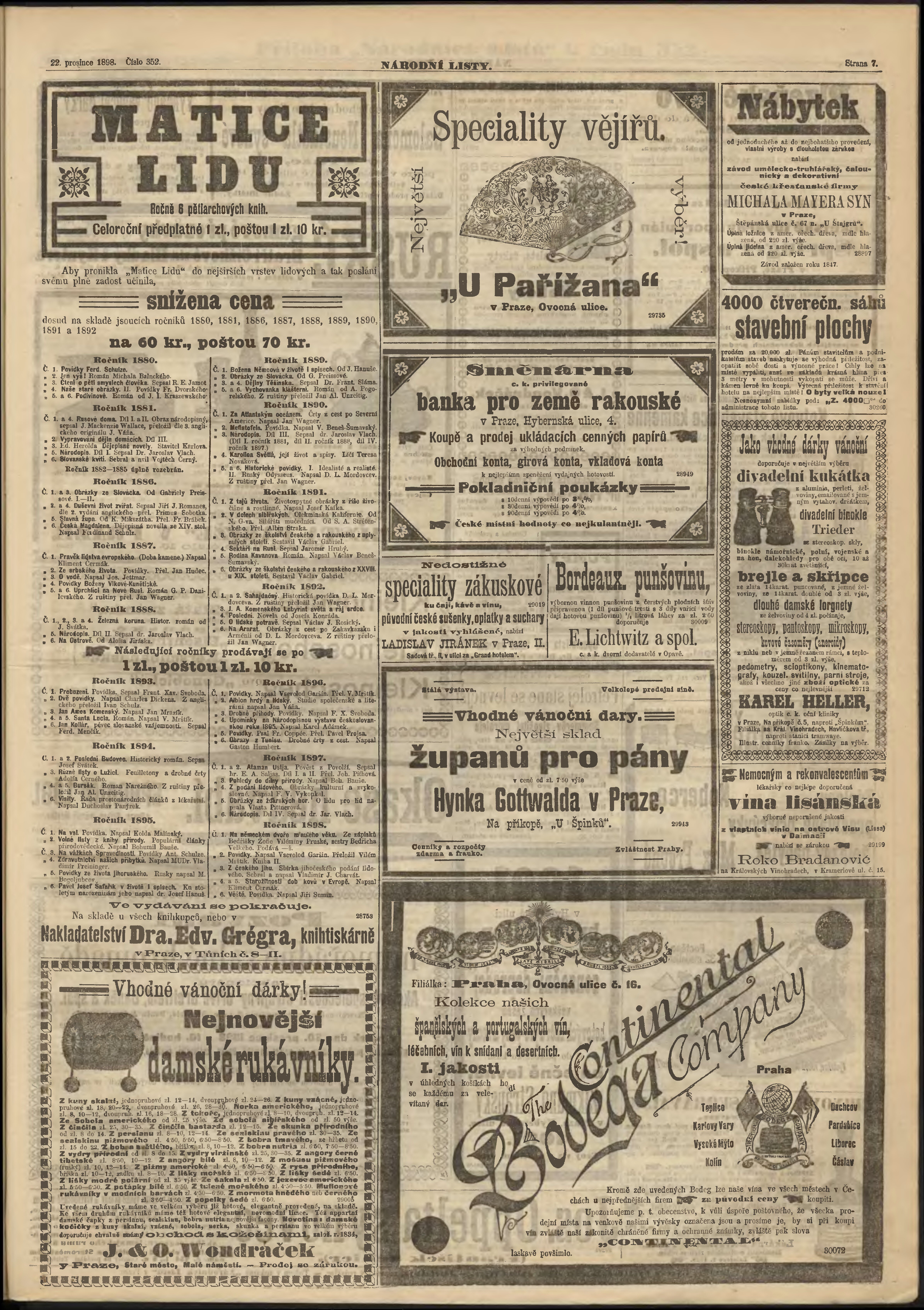 * Datum vydání výtisku: 22.12.1898 Číslo výtisku: 352